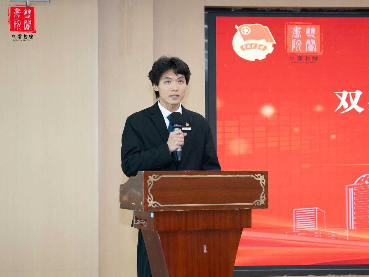 双馨书院新媒体中心、导师导生委员会、党务工作小组、心理工作站、楼层管理委员会、团委,学生会的汇报人依次上台,精炼地汇报了本学期各组织的工作成果。这些成果不仅生动展现了各学生组织的蓬勃活力与创新实践,更以扎实的行动与务实的成效,为双馨书院的高质量建设与持续发展注入了坚实的青春力量。