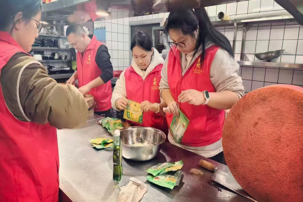 早餐准备完毕后,志愿者们排成长队,亲手将热气腾腾的早餐递到前来驿站的爷爷奶奶手中,轻声问候、耐心叮嘱,还主动搀扶行动不便的老人,护送他们安全过马路,用细致的举动传递温暖。