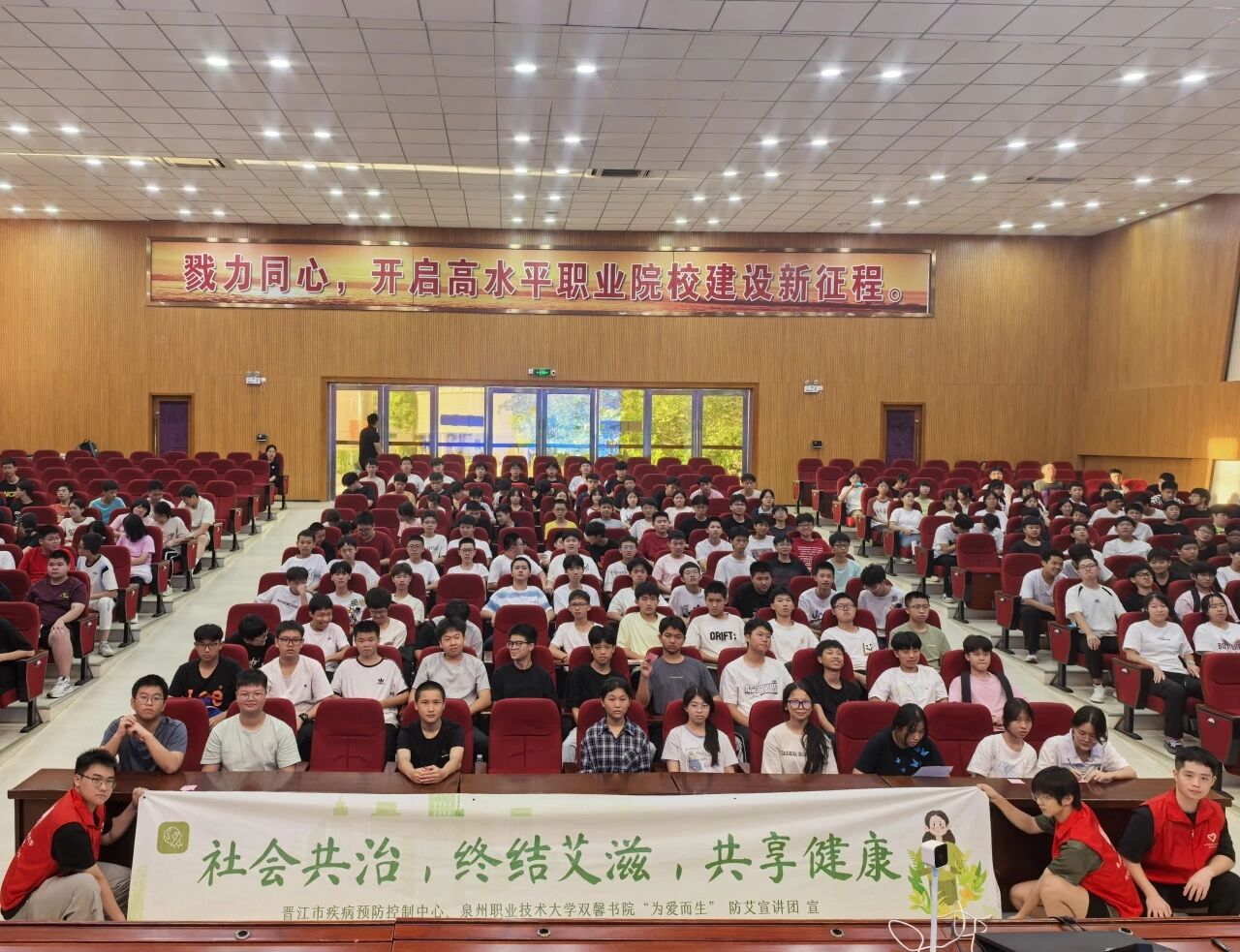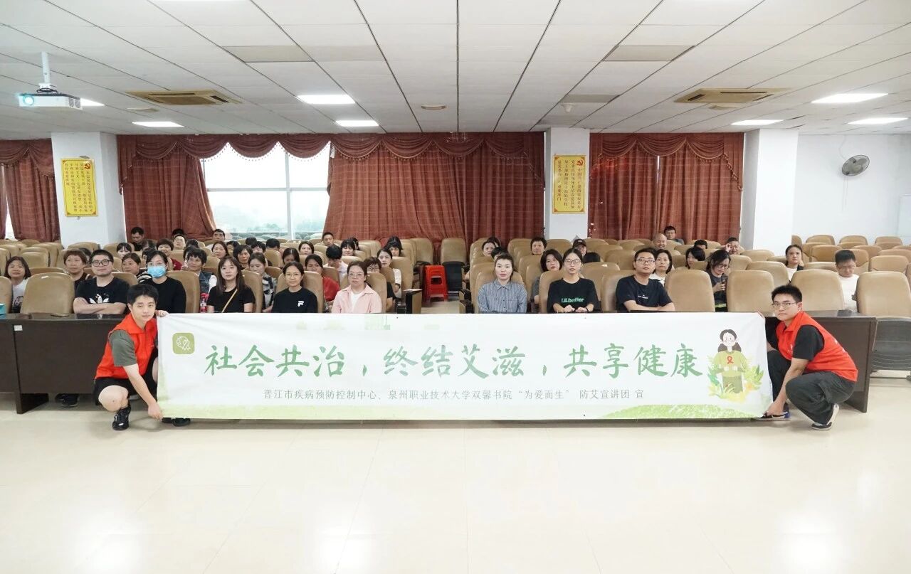 党建引领,健康同行。晋江市疾控中心与泉州职业技术大学双馨书院联合组建“为爱而生”防艾宣讲团,由15名大学生志愿者组成。团队以“大健康教育”理念为核心,以“进社区、进企业、进校园”为主线,开展防艾宣传,通过情景剧、主题活动和知识竞答等形式,助力“科普晋江”建设。2025年累计开展10余场大型宣讲,直接覆盖超1w人,营造了“人人知艾、人人防艾”的良好社会氛围。