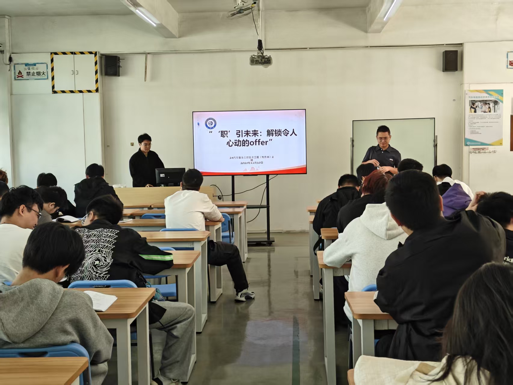 从“迷茫找方向”到“清晰定目标”,从“面试怕说错”到 “表达有逻辑”—近日,泉州职业技术大学工学院专为汽车服务工程技术、机械设计制造及自动化专升本专业即将实习的同学们,打造的“‘职’引未来:解锁令人心动的 offer”主题班会圆满结束!一场聚焦“实用、落地、专业适配”的求职赋能之旅,让同学们带着干货与信心,向职场第一步稳步迈进。