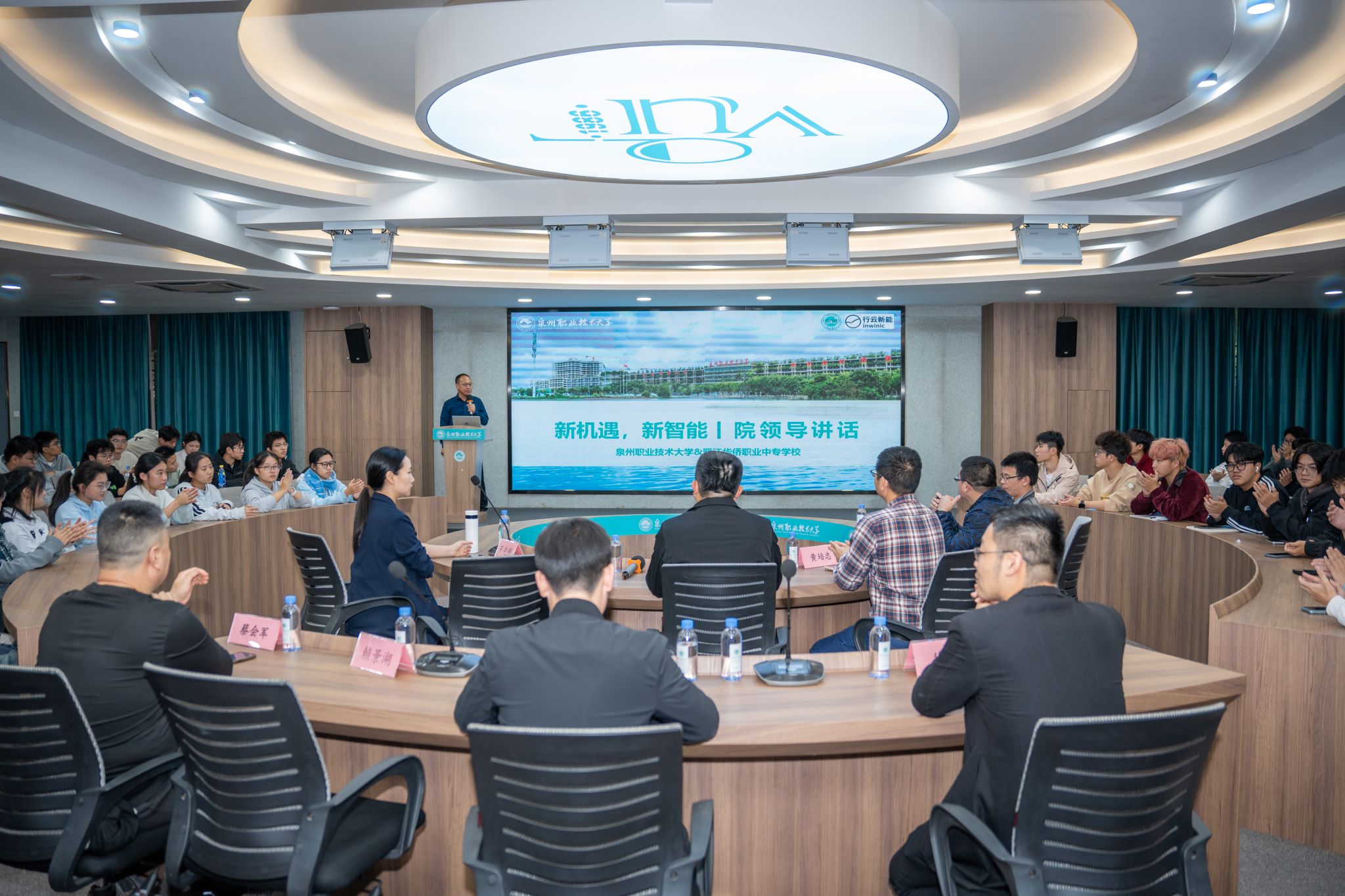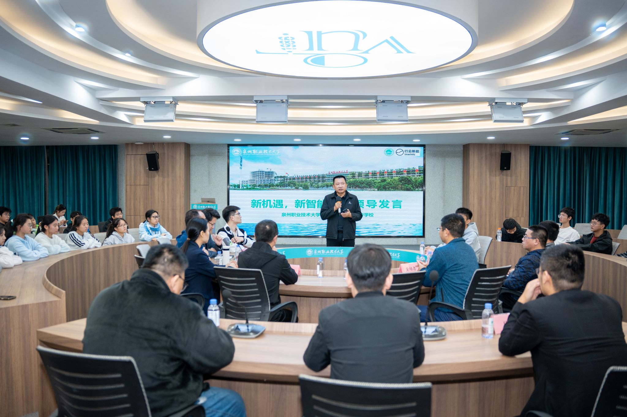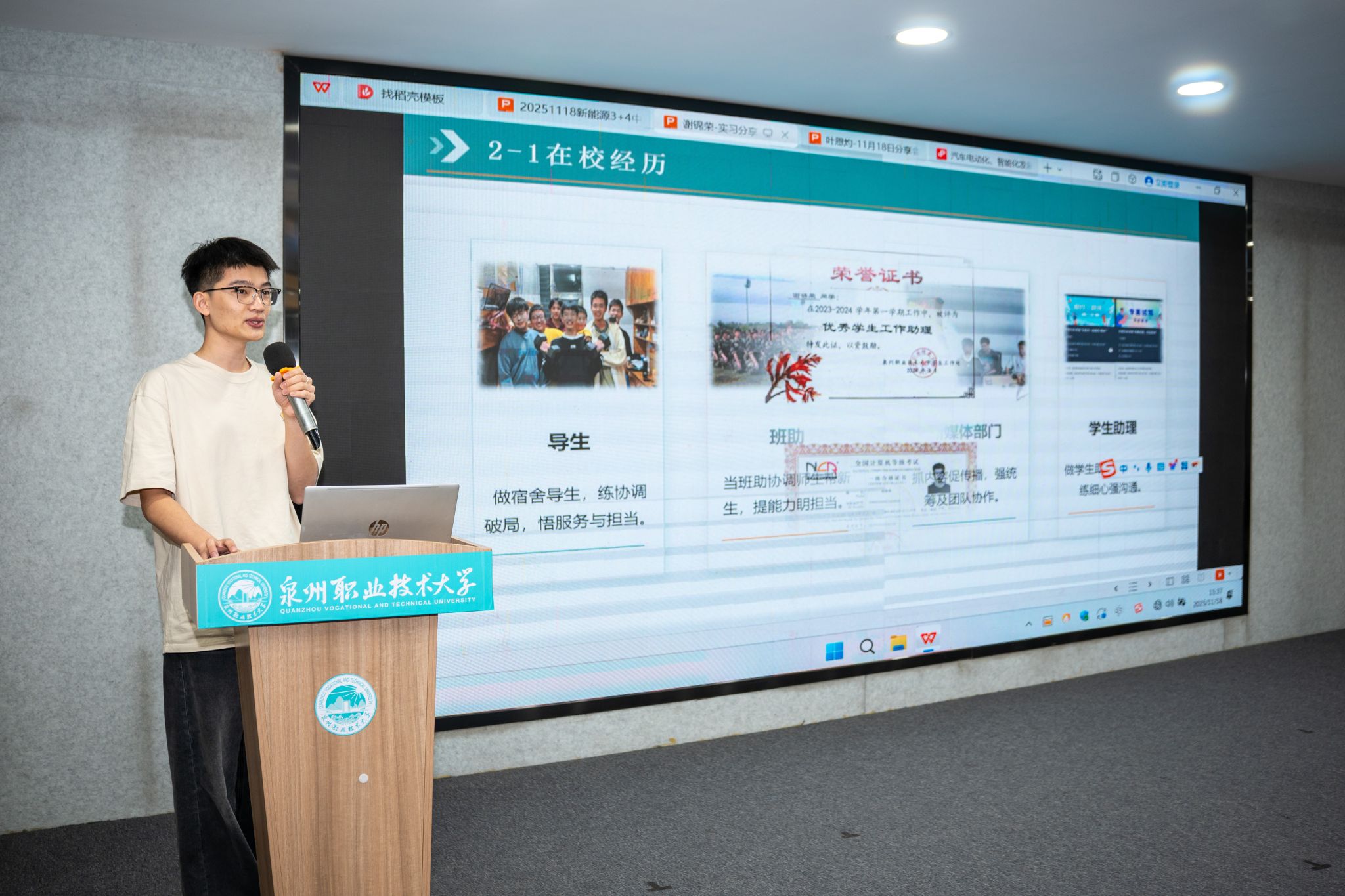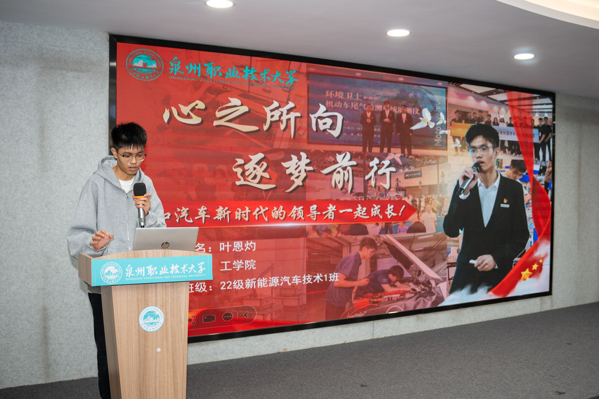 会议上,泉州职业技术大学工学院书记兼副院长陈其生向大家的到来表示热烈欢迎,并介绍了新能源汽车相关专业优势及两校合作规划,为学子们清晰勾勒出“中职筑基、本科提升”的贯通培养路径,让大家对未来学业进阶有了明确方向。