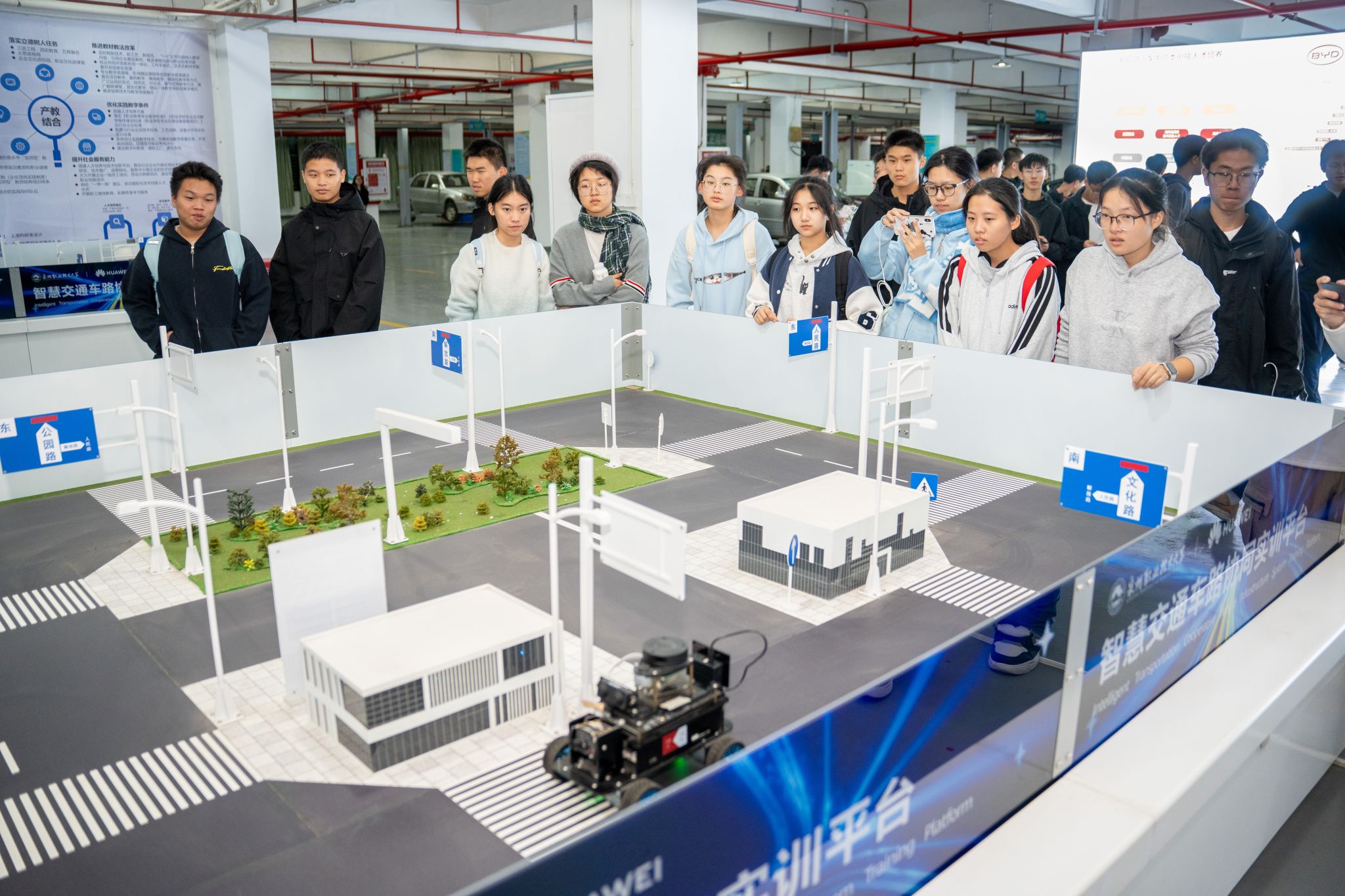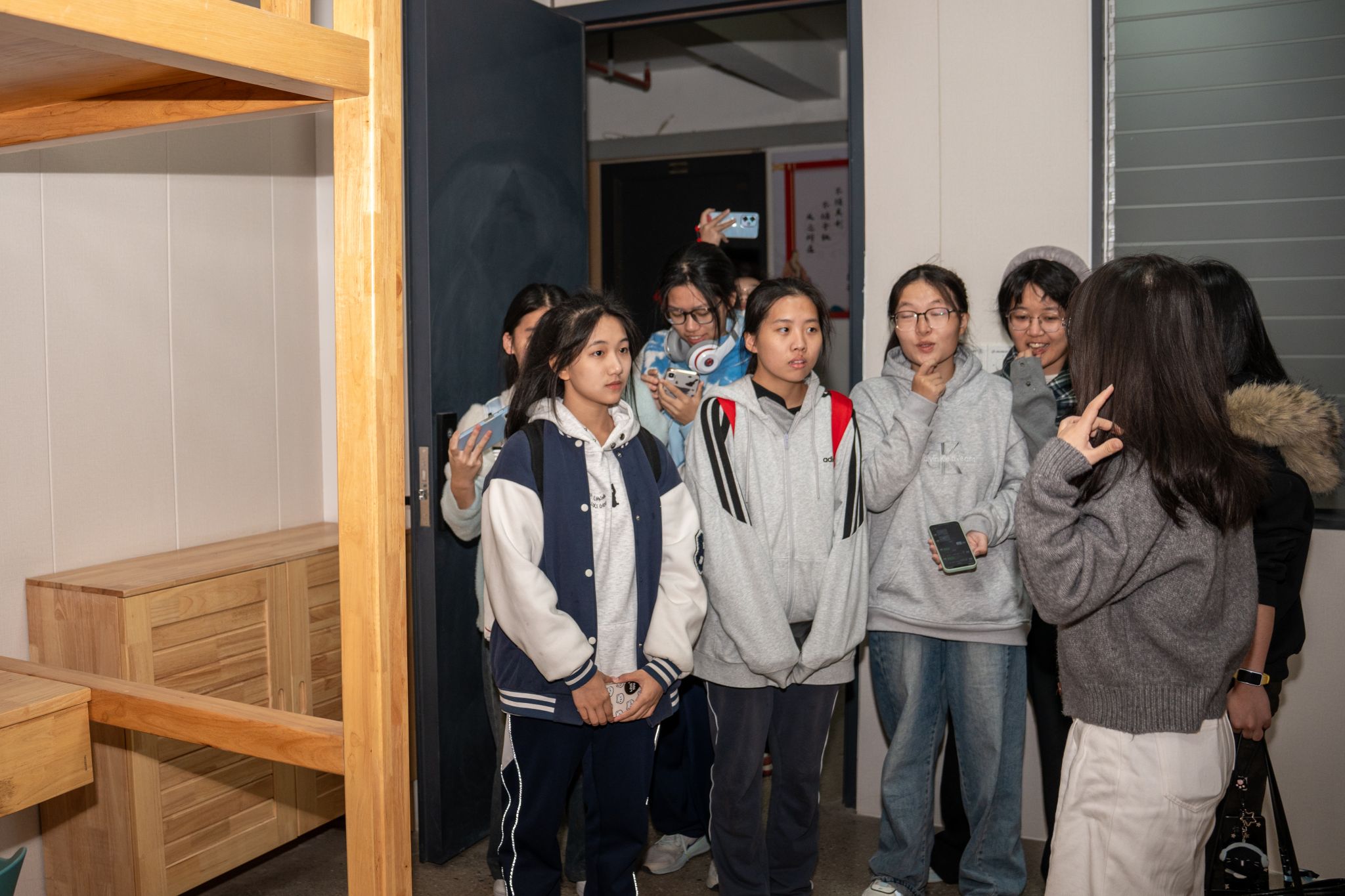 座谈会后,学子们在老师与学长学姐的带领下,开启沉浸式校园探访。走进汽车工程中心,大家近距离观察电池检测设备、智能驾驶模拟沙盘,亲身感受专业实训的真实场景;穿梭于教学楼、宿舍楼,在静谧的校园氛围中,触摸高校的学术底蕴与专业魅力。虽天气阴云笼罩,却丝毫未减大家的热情,每一个场景的探访都成为对未来求学时光的美好憧憬。
