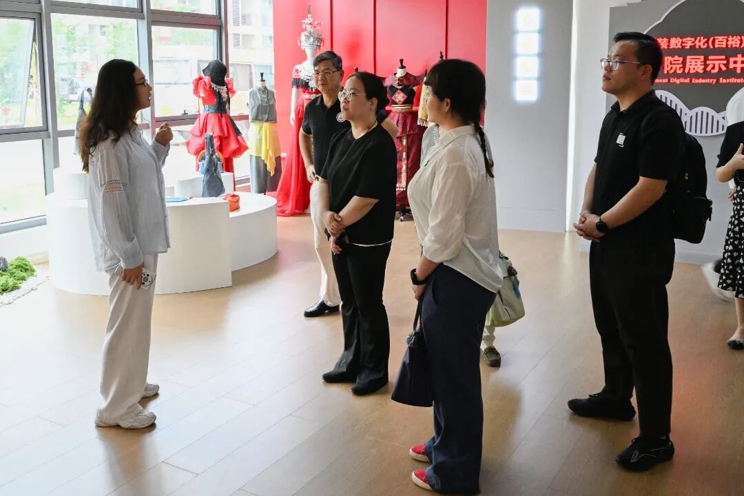 吴滨如一行先后参观了电商谷一期和二期项目、广西技能大师联盟(广西技能大师之家)、服装数字化产业学院数字化展厅、智慧商务产业学院,对电子商务专业群在技能人才培养、非遗传承和职教出海的功能布局、运营模式以及与地方产业的结合进行了细致考察。