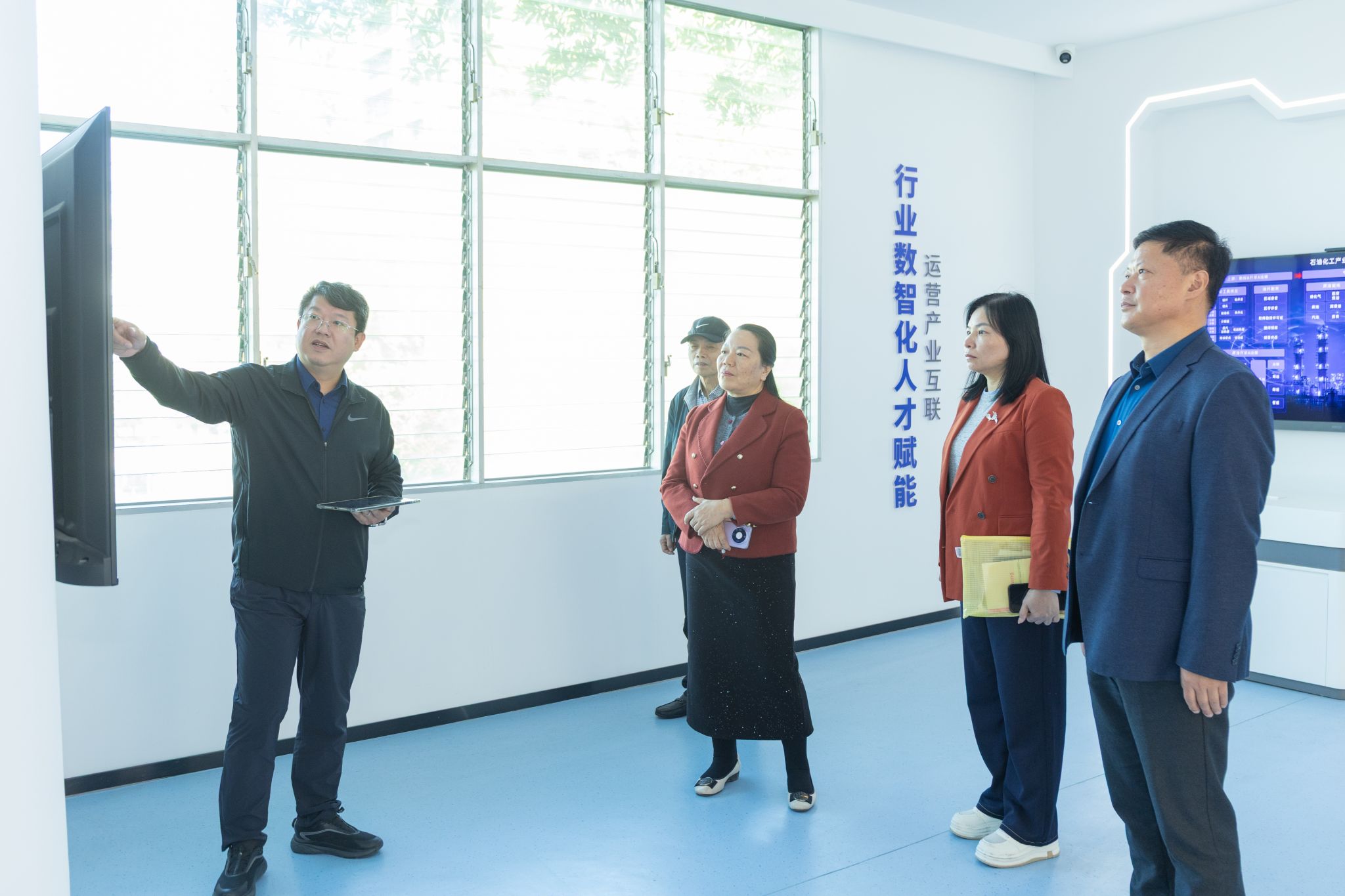 在我校副校长张建军的陪同下,来宾一行实地走访了生态校园沙盘、校史馆、艺术设计展厅、电商直播基地、数智产教融合展厅、石油化工实训基地、行云新能源汽车产业学院等核心办学场所及安踏电商服务产业学院、金鸿智联有限公司等校内生产性实训基地,全方位、多角度了解我校在校企协同育人机制构建、专业群内涵建设与数智化人才培养模式创新等方面的实践成果与鲜明特色。