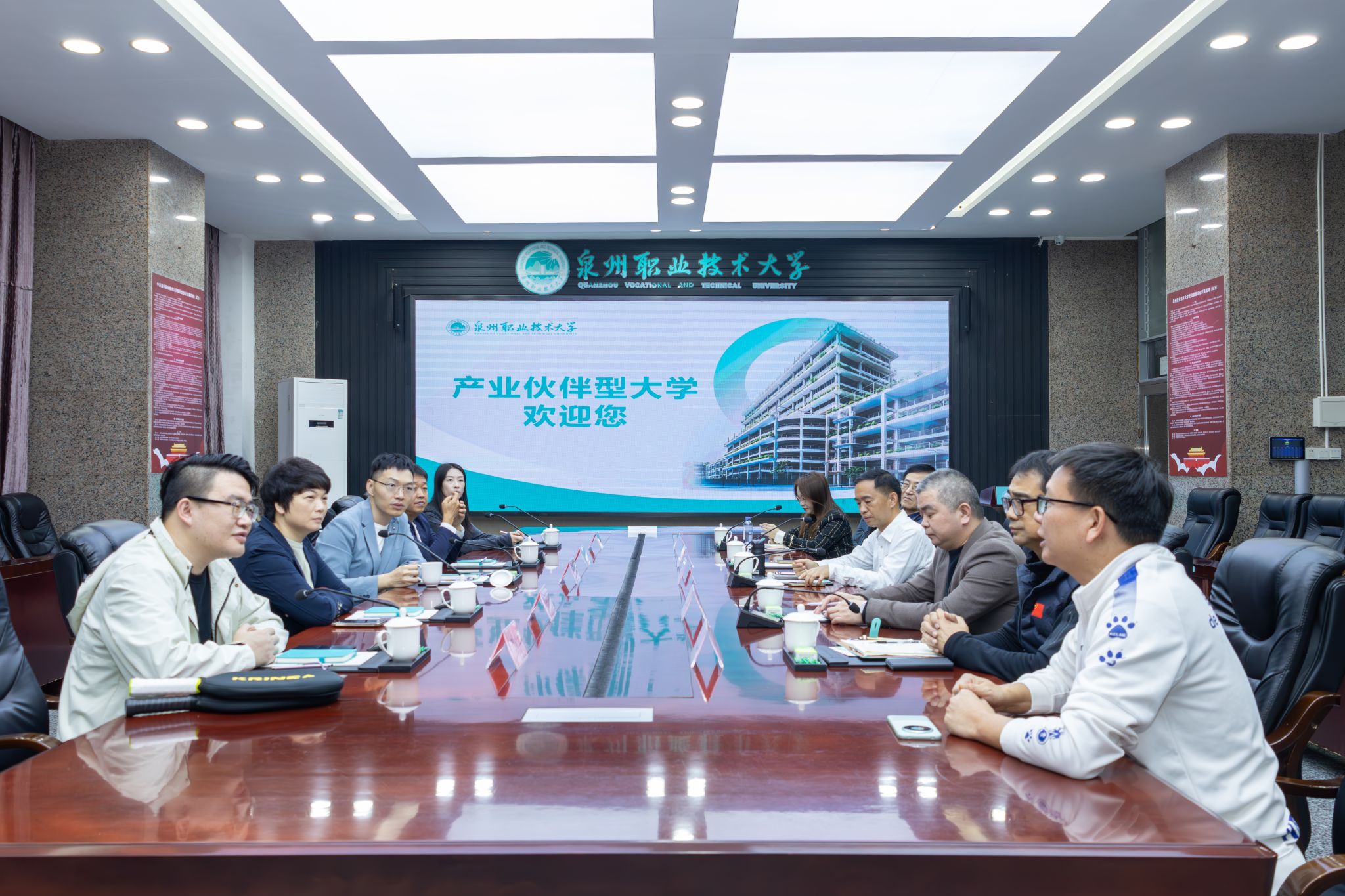 12月11日下午,晋江市西滨镇党委书记黄华君、宣传委员/武装部长庄建良、便民服务中心主任曾海峰,以及福建烯聚新材料科技有限公司运营总监孙晓、泉州凯瑞麟体育用品有限公司总经理邢功立一行莅临我校交流访问。我校党委书记傅志雄、校务顾问吴建生、副校长林文艺陪同参观并出席座谈。