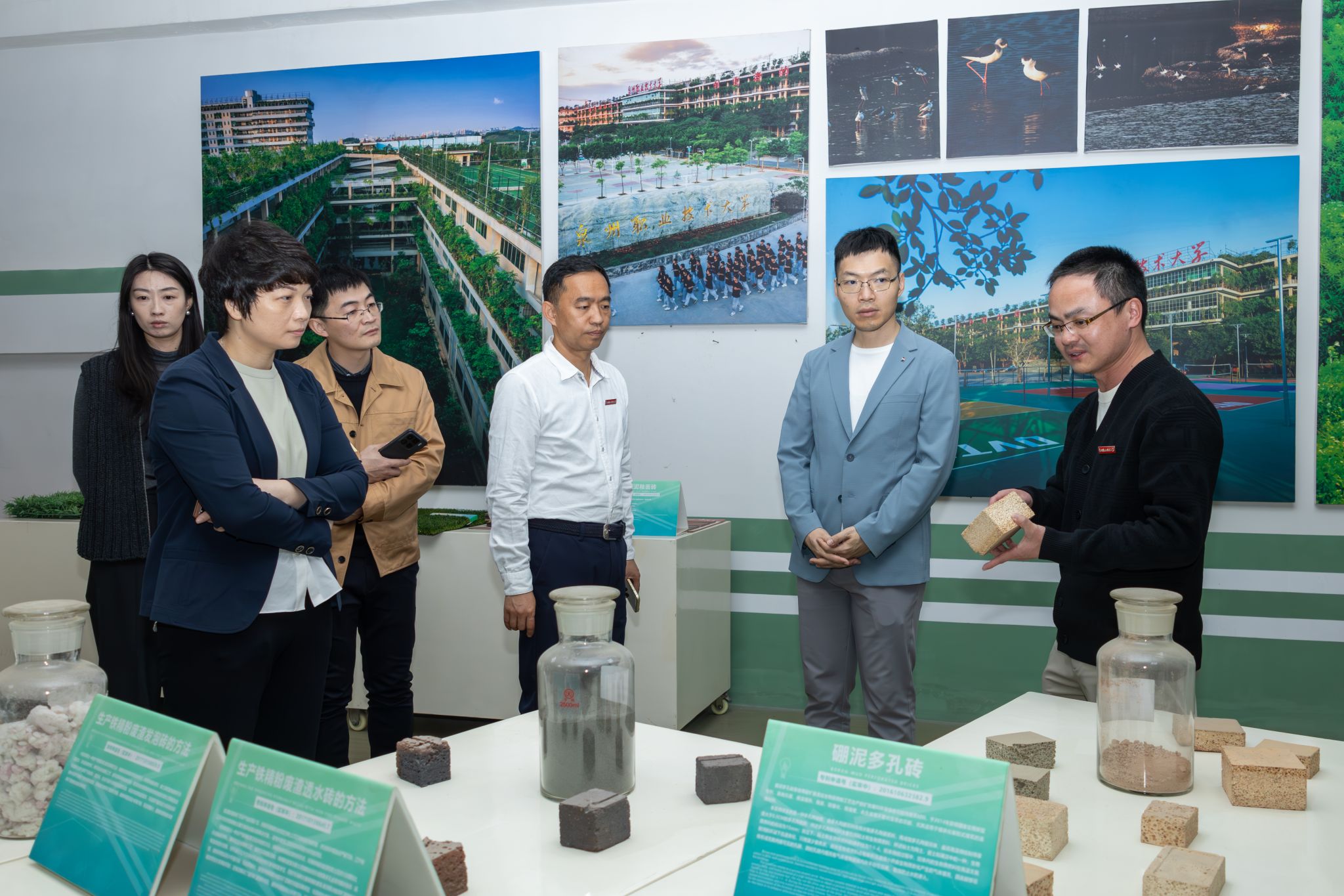 来宾一行走访了生态校园沙盘、校史馆、电商直播基地、艺术设计展厅、绿色建筑展厅、数智产教融合展厅、行云新能源汽车产业学院等教学实训场所,深入了解我校在校企协同育人、专业群建设与数智化人才培养等方面的实践成果。