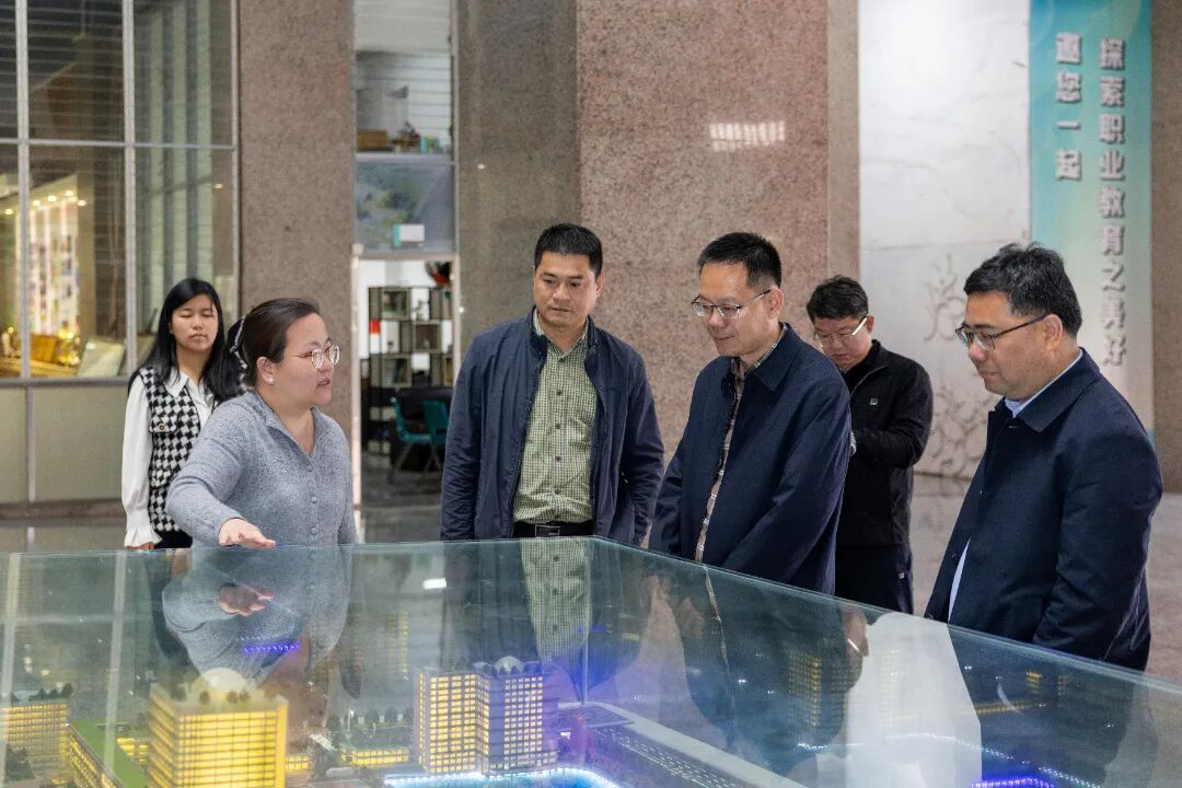在校长吴滨如、副校长张建军、副校长郭霏霏、校长助理/教务处处长苏康敏的陪同下,张惠强一行实地走访了校园沙盘、校史馆、数智产教融合展厅、能源学院、行云新能源产业学院等教学科研场所。校领导重点介绍了学校的历史沿革、专业群布局、双高建设成效、数智化人才培养以及学校与龙头企业的深度合作情况,重点阐述了“产业伙伴型大学”办学定位下产教融合的实践路径。校领导表示,学校始终坚持以就业为导向,通过深化校企合作、精准对接产业需求,不断提升毕业生本地就业率,为区域经济发展提供坚实人才支撑。