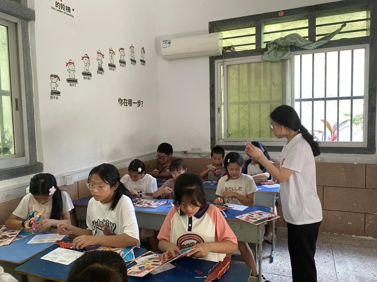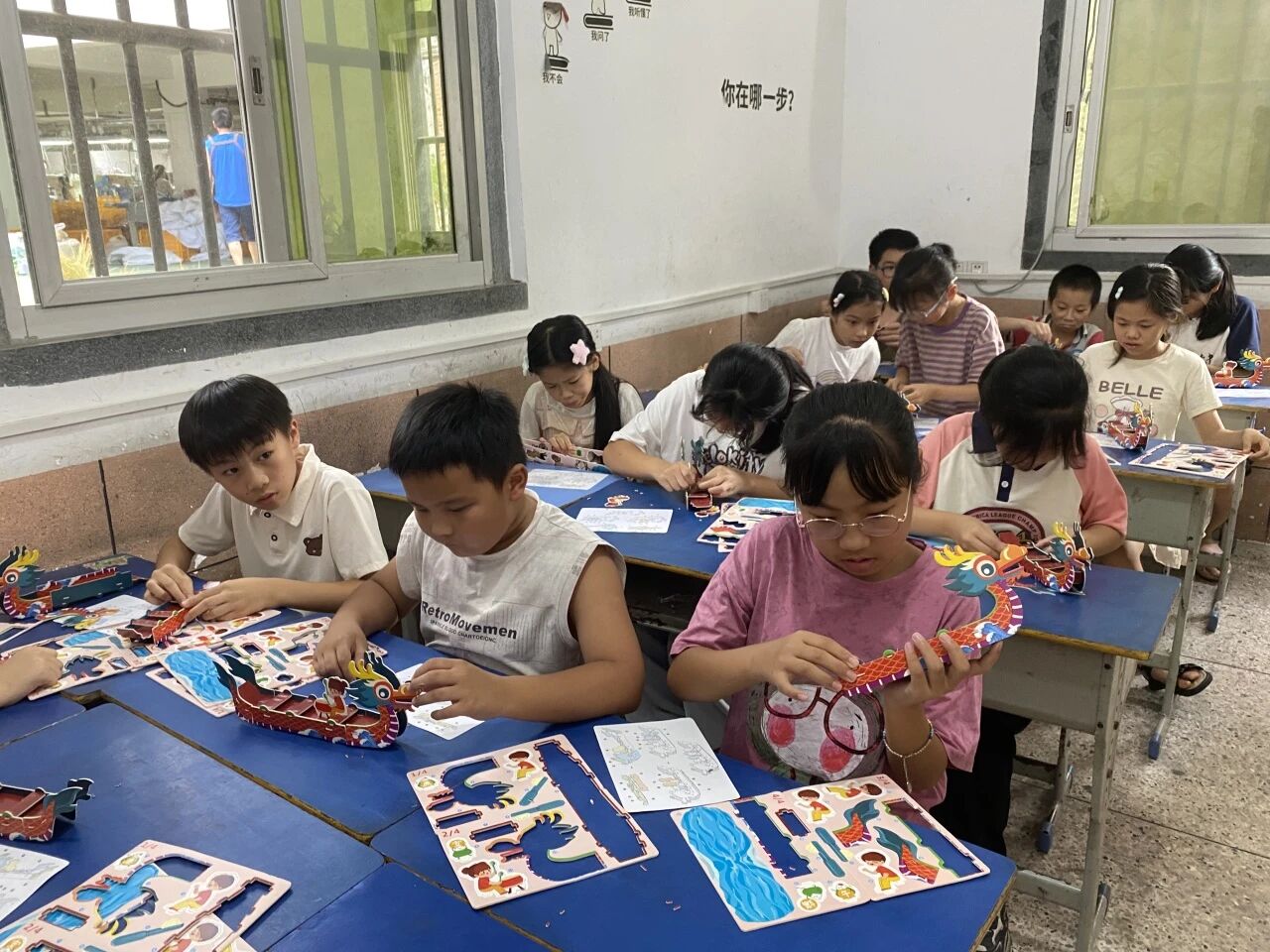 实践团队走进莆田当地的生活社区,组织一群不同年龄段的小朋友开展了一堂生动的“龙舟非遗课堂”,使他们了解家乡的文化故事。通过队员们精心为小朋友们设计的木兰溪治理及龙舟非遗文化的学习课程包,并配合手工文创,制作龙舟模型,把木兰溪龙舟“划”到桌面上!孩子们跟着“咔嚓”掰下自己的泡沫零件,再把泡沫块一块块扣插,龙舟逐渐成形,每装好一节,在这过程中队员就把龙舟非遗知识“藏”进去,例如“龙鳞纹怎么来的?”“没错,是木兰溪的波纹印上去的。”十分钟后,栩栩如生的“泡沫小龙舟”就都在小朋友们的手上“游荡”,童声此起彼伏,一块泡沫、一双小手,把宏大的治水工程和古老的龙舟技艺,变成孩子能够触摸、能够带回家的家乡故事。
