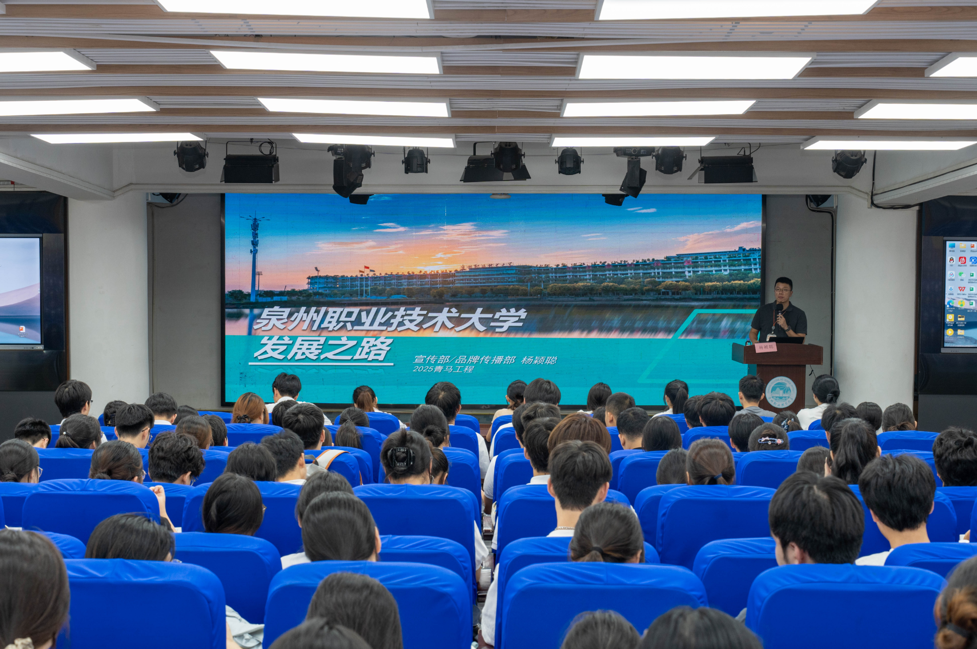 “在晋江边陲小镇的石头房中,一份跨越三十余载的职教蓝图就此擘画。”杨颖聪老师以校史为脉络,系统梳理了泉州职业技术大学从1986年晋江摩托车培训学校起步,到2019年跻身全国首批本科层次职业教育试点高校的奋进征程。他着重强调,建校39年来,学校始终坚守“奉献社会”的初心与“为民谋利”的宗旨,凝聚起“师生爱校如家”的深厚情感,更将“学习知识技能,更好服务社会”的理念融入血脉、代代传承。