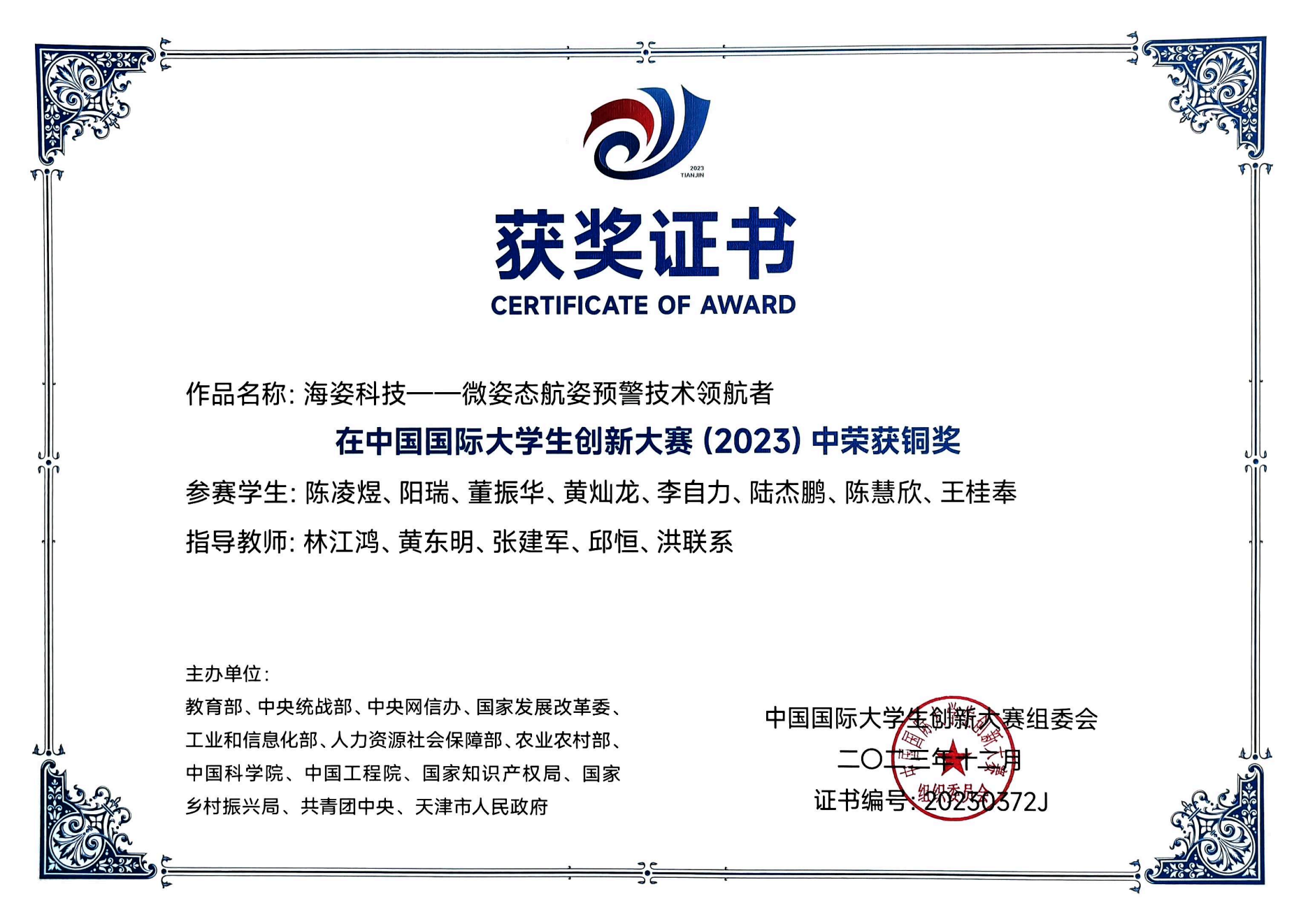 2023年12月 中国国际大学生创新大赛(2023)铜奖;