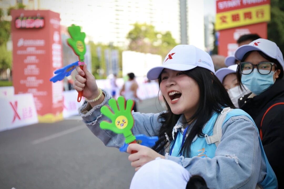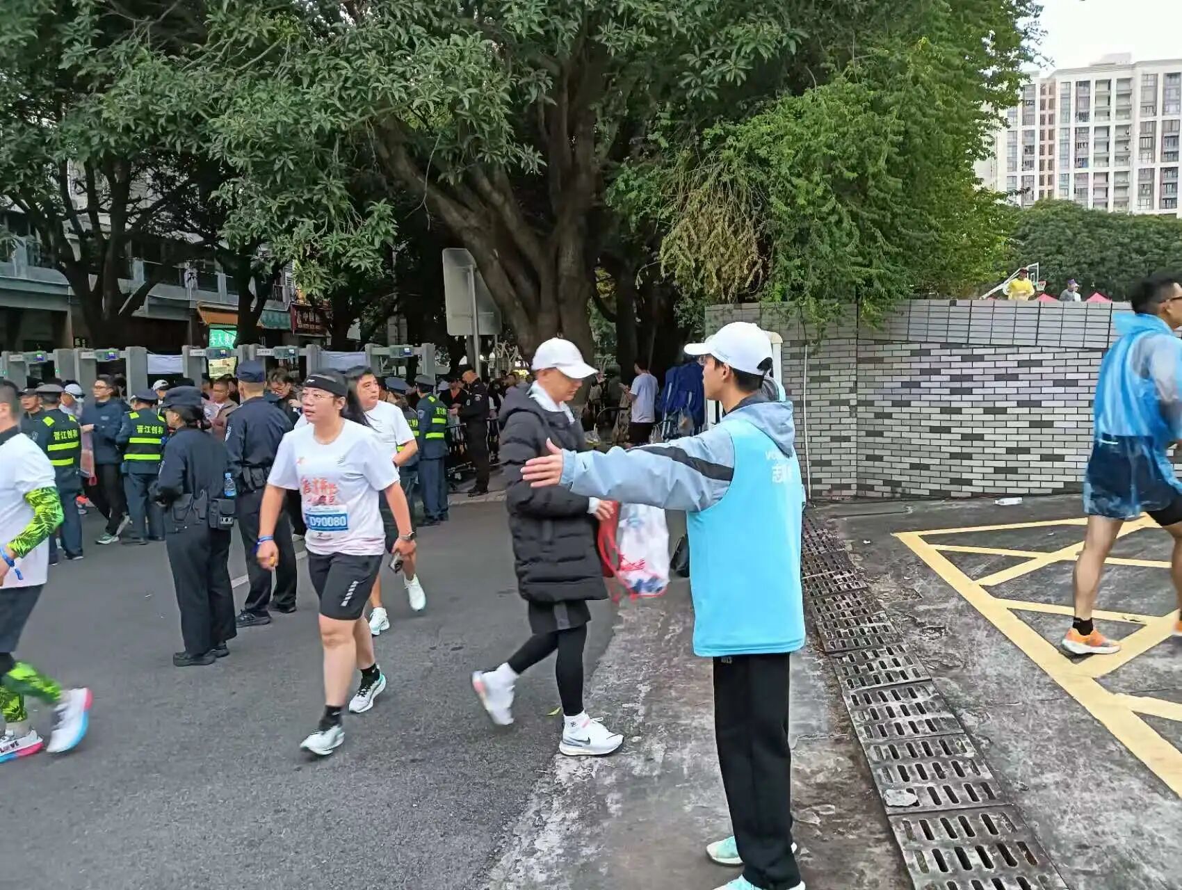 16名志愿者为参赛选手全程坚守在道路两侧。他们高举标语牌、挥舞彩旗,为每一位冲线的跑者呐喊助威。面对疲惫的选手,他们及时提供鼓励问候,为其加油充电,用热情与关怀驱散跑者的疲惫,让冲刺时刻充满温暖与力量。