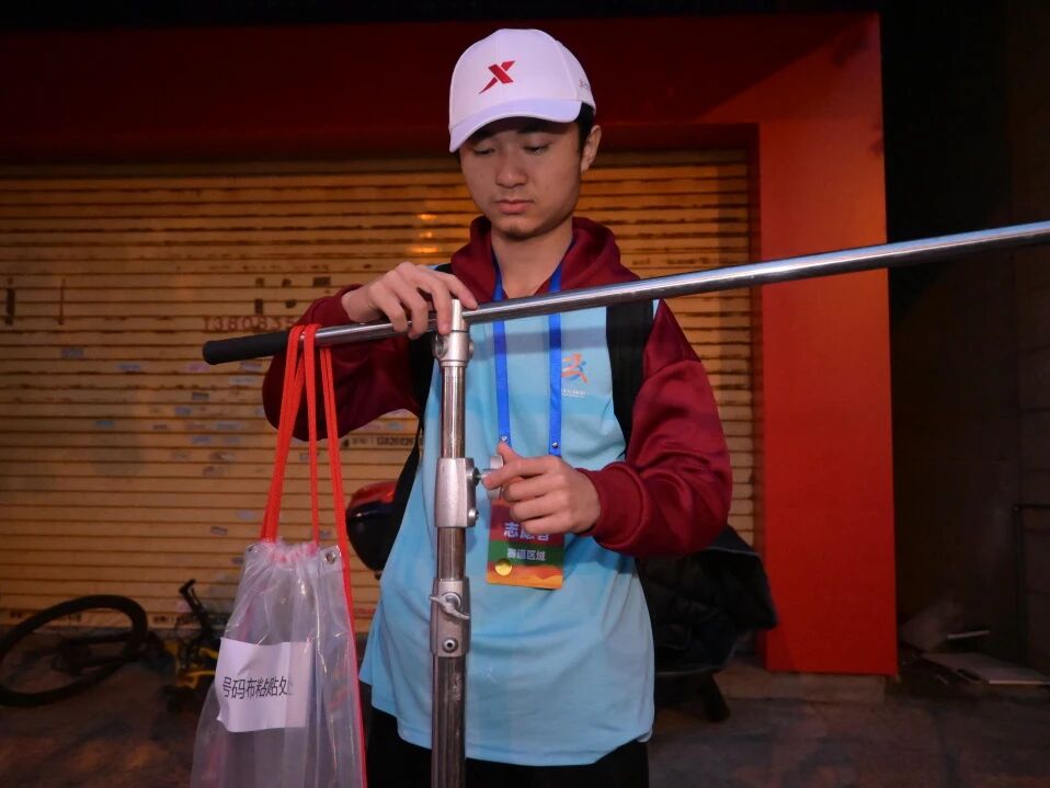 20名志愿者清晨6点便驻守永丰路、世纪大道等关键路口,手持指引牌引导运动员有序进入主会场,7点30分后转场至半马完赛包区继续投入物资发放工作。