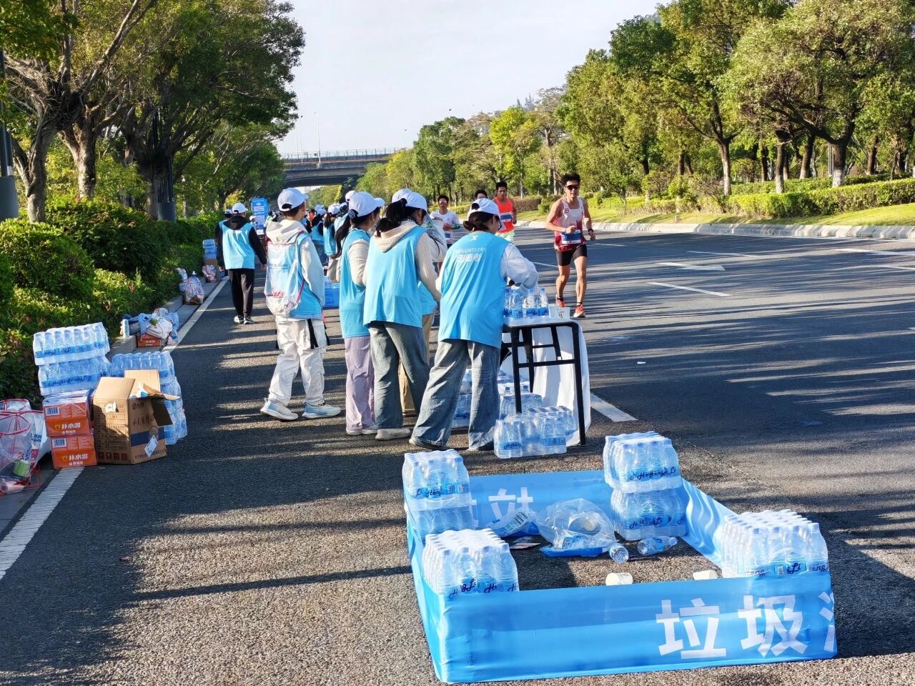 从5KM到40KM,志愿者们提前整理饮水、饮料、能量食品等物资,在运动员经过时快速递上补给,用双手传递能量与鼓励,部分志愿者还根据赛事安排灵活转岗,保障重点路段补给不缺位。