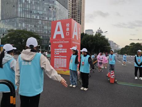 12月7日,2025特步泉州晋江马拉松赛将在晋江市体育中心鸣枪开赛。15000名跑者用脚步丈量刺桐古城。来自我校的768名青年志愿者身着统一蓝色服装,以饱满热情和专业素养投身赛事服务,为这场奔跑盛会注入温暖底色。