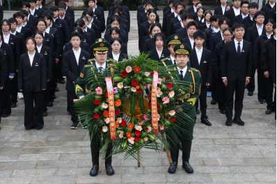 教师代表缓步上前,仔细整理花圈缎带。这一举动,既寄托了对革命先烈的深切追念,也以直观的仪式教育,让青年学子深刻感受到铭记历史、尊崇英烈、传承精神的厚重氛围。