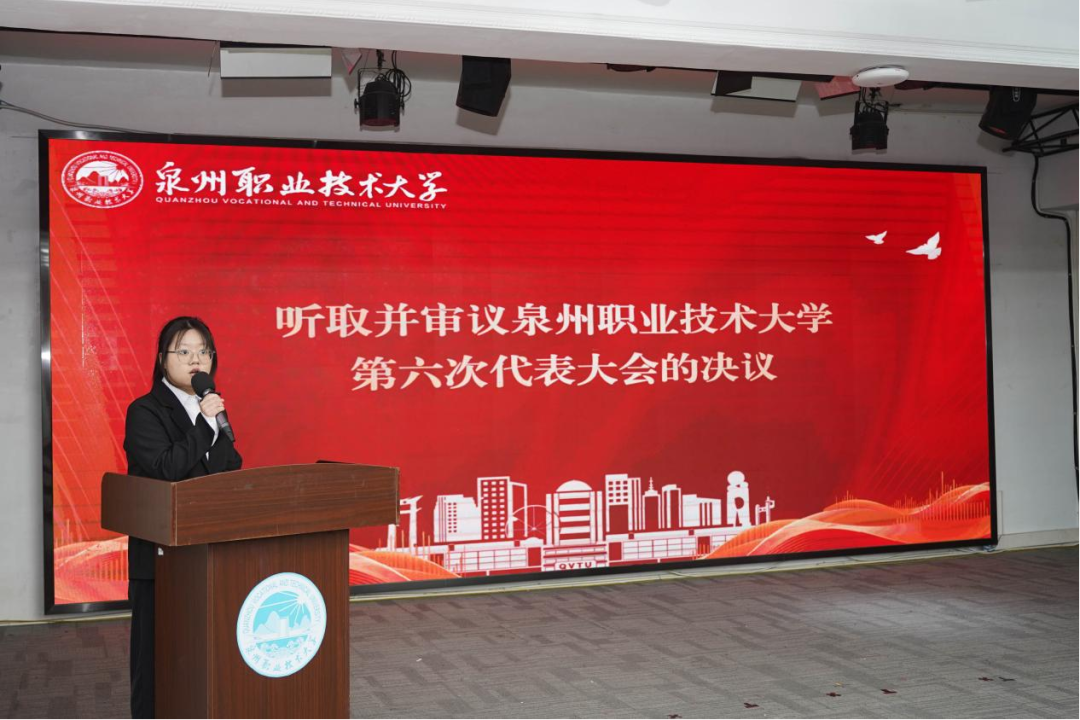 大会闭幕式上,宣读泉州职业技术大学第六次学生代表大会的大会决议以及第六次学生代表大会倡议书,号召全体同学以此次大会为契机,坚定理想信念,锤炼过硬本领,主动担当作为,为学校发展与民族复兴贡献青春力量。