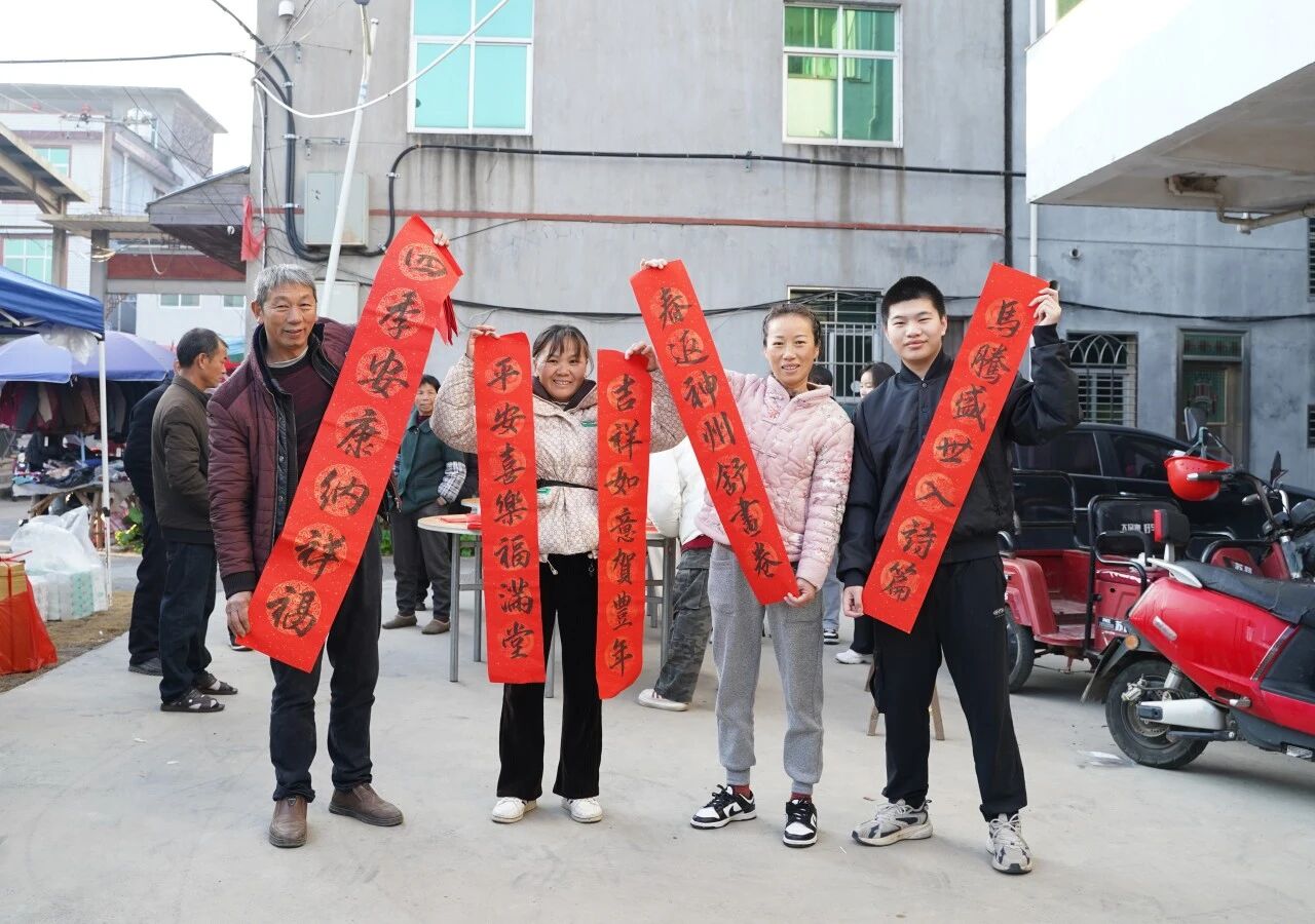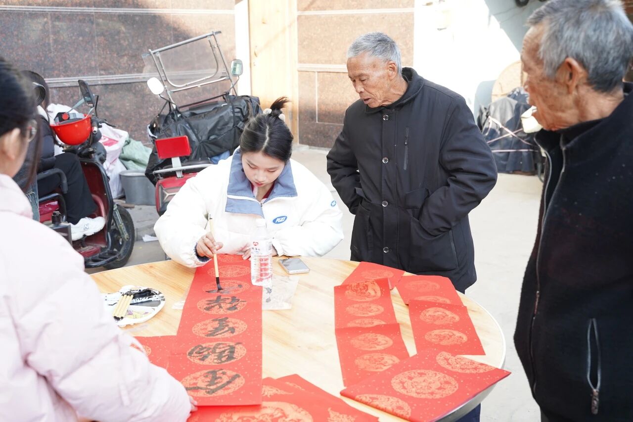 新春将至,年味渐浓。实践团以“新春送福+文化传承”为抓手,联动宣传组挖掘传统文化,拍摄文化宣传片,为村民送去新春温暖与祝福。古厝檐下,实践团成员铺纸提笔,手写春联传递温暖与年味,根据村民需求定制联语,将真诚的祝愿化入笔墨。活动成为连接青年与乡土的细腻对话,让服务乡村振兴的暖意,真切地融入乡亲们的日常生活。