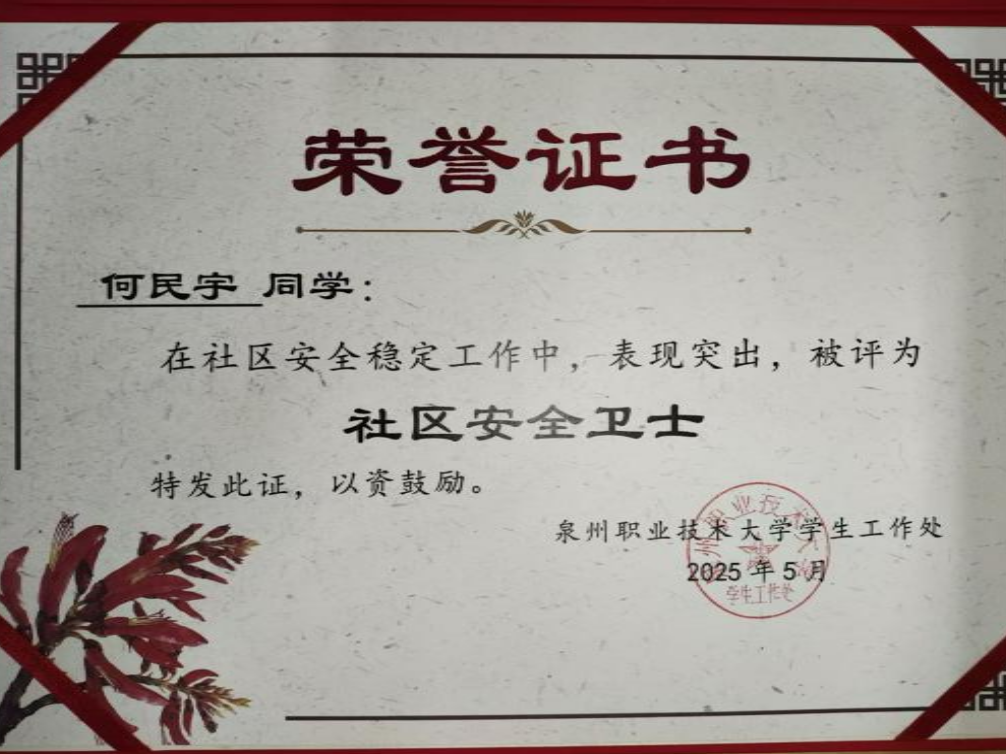 2025年5月 泉州职业技术大学“社区安全卫士”;