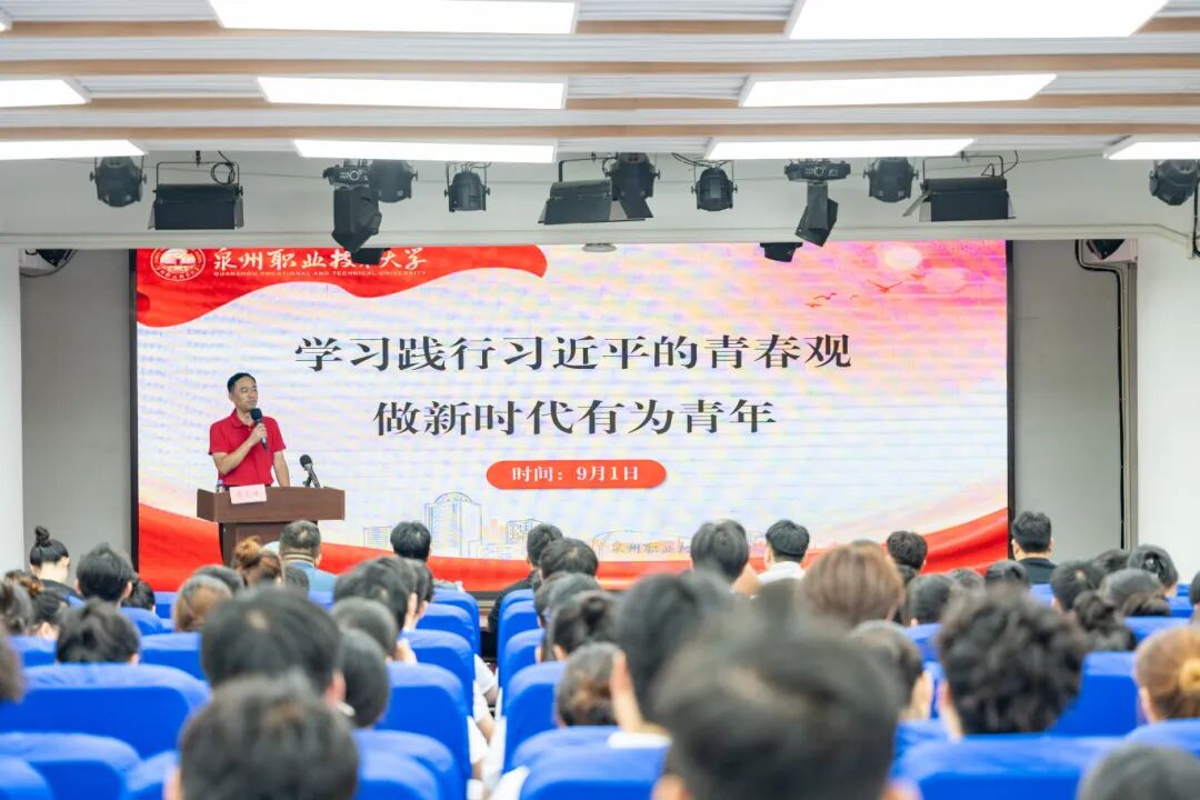 “青年怀壮志,立功正当时,此时不搏更待何时,责任担当,舍我其谁!”近日,泉州职业技术大学A633报告厅内掌声如潮,党委书记傅志雄以《学习践行习近平的青春观,做新时代有为青年》为题,为300余名青年学子、校团委及各书院团干部送上新学期“第一堂思政课”,用跨越百年的青年嘱托与鲜活生动的成长指引,点燃学子“立大志、明大德、成大才、担大任”的青春豪情。