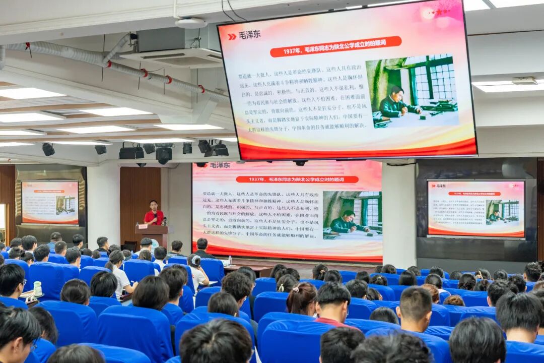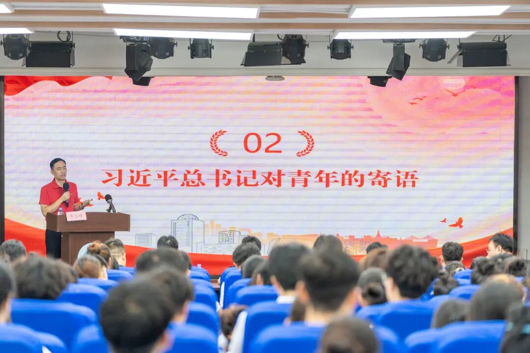 傅志雄在课堂开篇便点明学校“与党同心、同向、同行”的办学底色。他围绕“树理想、强责任、勇奋斗、修品德、练本领”五大维度,带领学子循着历史脉络,重温党和国家领导人对青年的殷切期许——从李大钊“国家不可一日无青年,青年不可一日无觉醒”的呐喊,到毛泽东对“革命先锋队”政治远见与牺牲精神的感召;从周恩来“新生幼苗终将成长为巨人”的寄望,到邓小平“远大理想融于日常工作”的指引,再到江泽民、胡锦涛对青年的嘱托,每一段跨越时空的寄语,都让在场学子深刻感受到“青年成长始终与国家命运同频共振”。