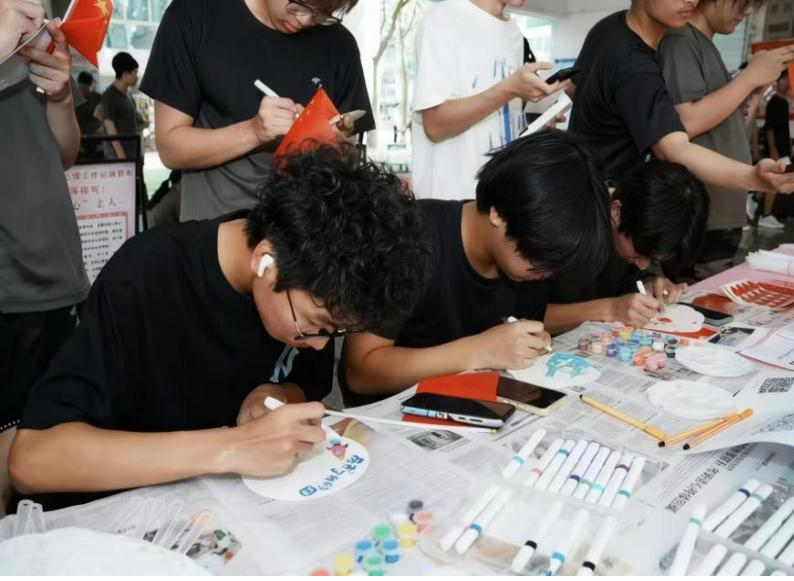 双馨学子们手执画笔,蘸取丹青,于素白团扇上悉心绘制。随着笔锋流转,一幅幅融合传统意蕴与时代审美的“国潮”画卷徐徐展开,方寸之间尽显山河锦绣、国泰民安的美好图景。此次活动不仅是一次艺术创作,更是一堂生动的文化自信与爱国主义教育实践课,让青年一代在传承与创新中,将对祖国的深情祝福化为永恒的艺术表达。