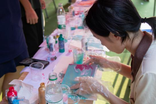 校学生会团支部组织开展“共染山河·流淌中国色”主题团日活动,围绕“国旗意象”“英雄群像”“山河新貌”等红色主题,引导青年学子以流体画为表达形式,通过色彩的倾注与融合,创作出一幅幅展现祖国壮丽图景的艺术作品,将爱国情怀融入艺术实践,以实际行动传承红色基因、凝聚奋进力量,展现出新时代青年与祖国同频共振、与时代同向同行的精神风貌。