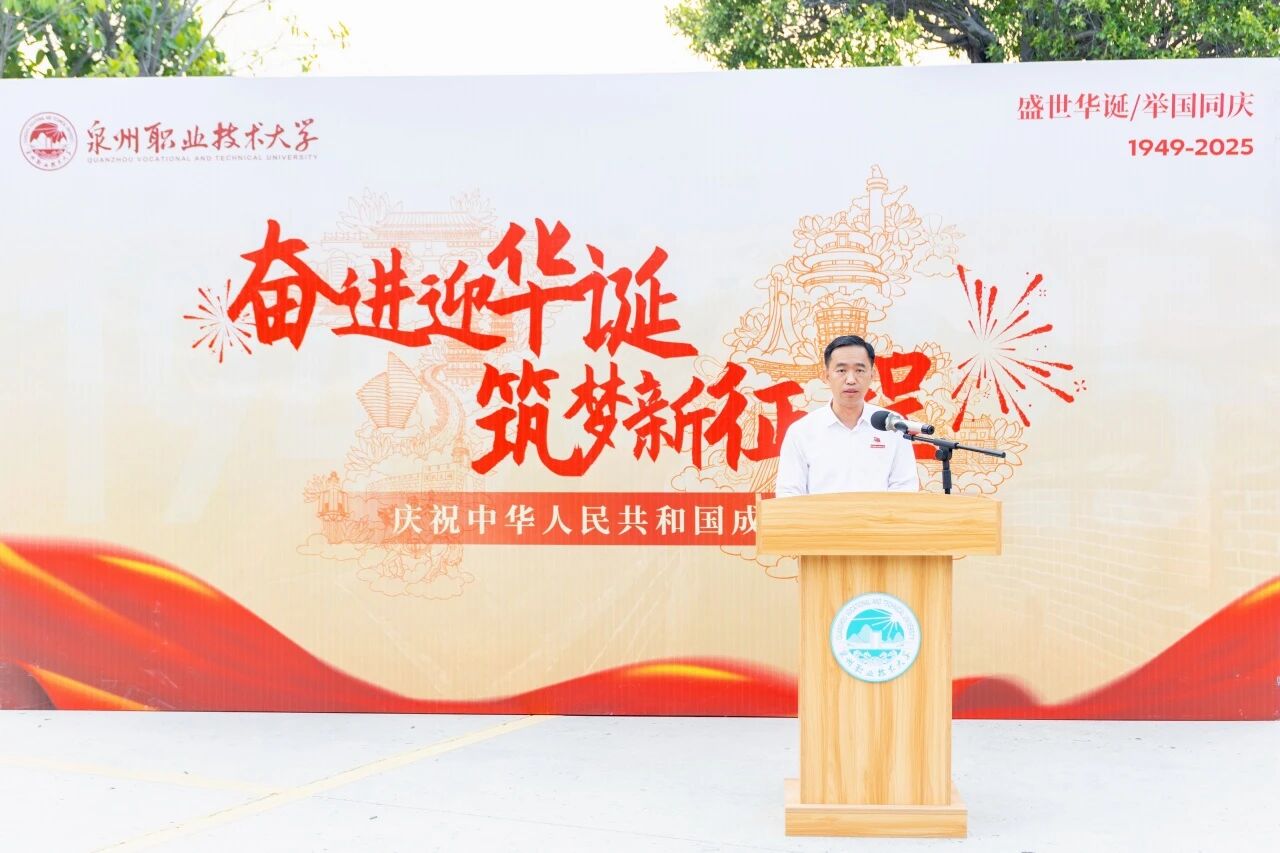 校党委书记傅志雄结合抗战精神与办学初心提三点期许:一是以“忠诚”铸魂,以杨靖宇、晋江侨胞为例,强调将个人理想融入民族复兴;二是以“勤奋”立身,提学校创办人吴金营董事长的经历与学校传统,指出职业教育需“勤练”;三是以“创新”破局、“奉献”担当,阐述新时代“创新”是在领域内“敢为人先”,“奉献”是在平凡岗位“发光发热”,号召泉大学子们成为“懂技术、善创新、肯奉献”的时代新人。