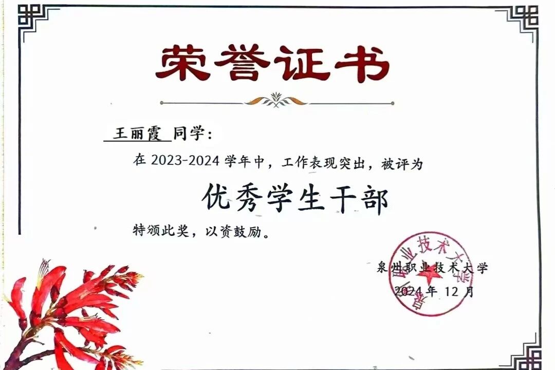 2024年12月 泉州职业技术大学 2023-2024学年“优秀学生干部”;