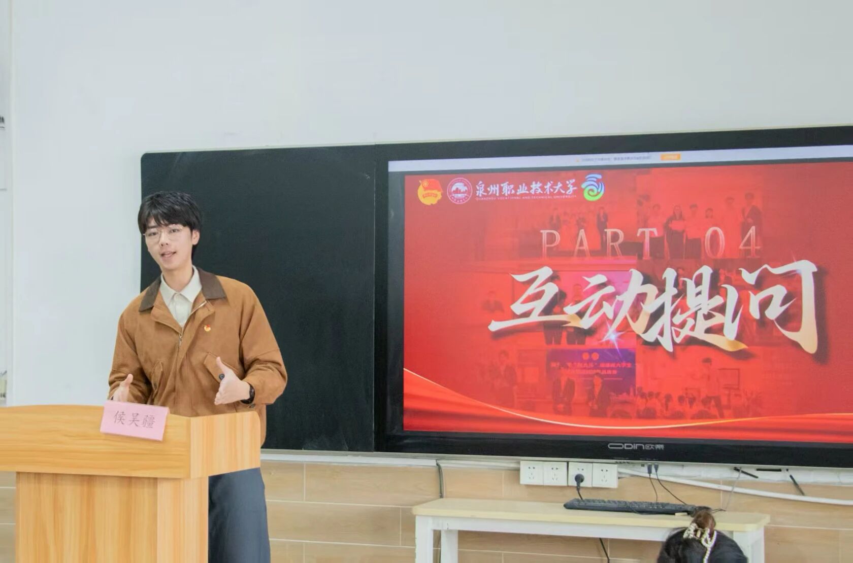 宣讲一开始,侯吴疆学长就分享了自己的成长内核:“从基层学生干部到校级核心骨干,从课堂试讲到舞台主持,从专业学习到学术竞赛,我始终相信,每一份经历都能成为彼此的养分。”他还说,学生工作是综合能力训练场——自己从广播台干事到校级学生骨干,在组织晋江市中小学运动会、颁奖典礼、迎新晚会等活动时,练出了统筹与团队管理能力;专业上深耕学前教育领域,撰写的论文入选市级教改成果汇编;更打破专业壁垒,跨界参与能源领域创新项目,用“敢想敢做”诠释了学前教育专业的无限可能。