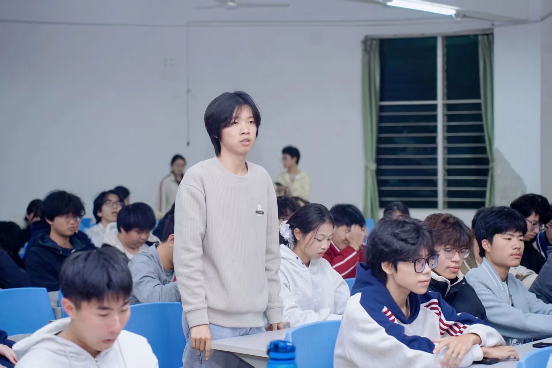 互动答疑环节,同学们围绕资源争取、竞赛信心等问题踊跃提问。面对“如何突破平台局限、主动争取资源”,李巧惠学姐回应:“先明确自己的目标,再针对性争取,学校的校企合作、校地共建资源都值得主动挖掘。”对“害怕尝试大型竞赛”的同学,她鼓励道:“青春的底色是勇敢,社恐也可以加入项目多请教,学长学姐能做到的,你也可以,大胆迈出第一步就赢了一半。”