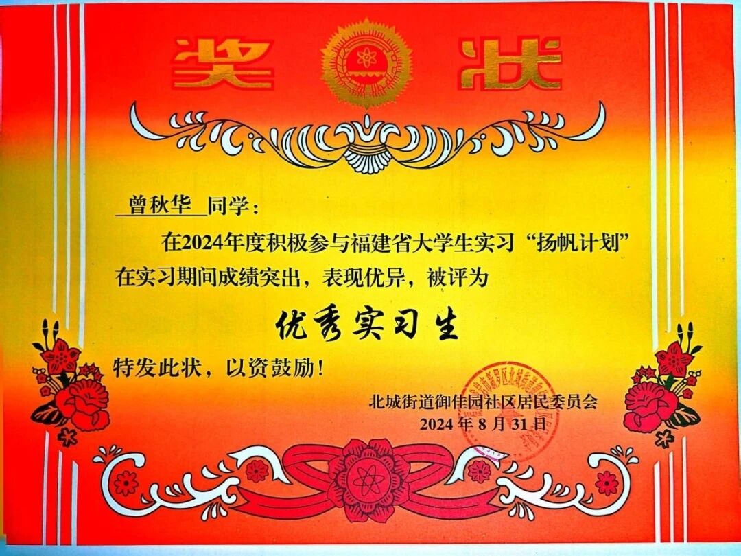 2024年08月 福建省新罗区扬帆计划“优秀实习生”;