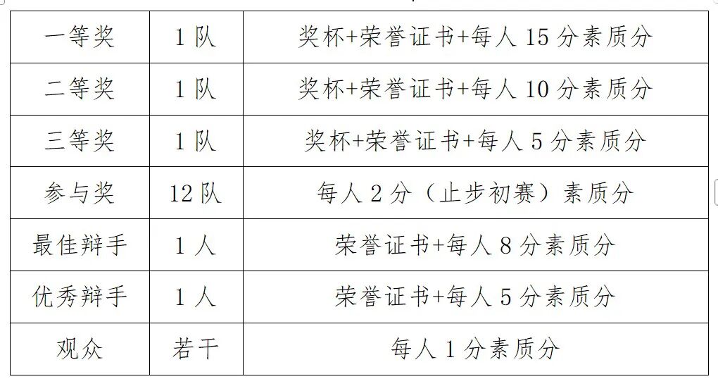注:1.最佳辩手、优秀辩手的分数可另外叠加