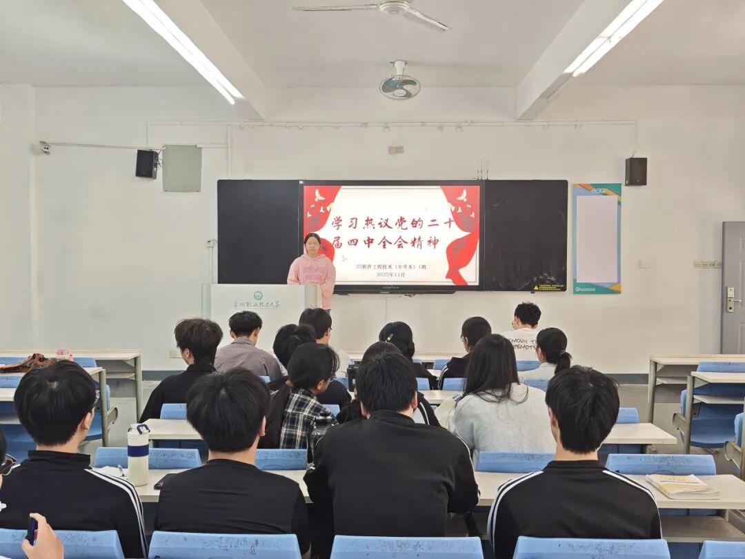 为深化学习深度、拓宽认知维度,2025年11月12日,一善书院团委联动马克思主义学院,邀请挂联思政老师潘超儒为2025级人工智能、软件工程专业学生代表量身打造专题学习分享会。这场 “青春创意与时代蓝图”的思想碰撞中,潘老师以“复兴路上的关键奠基”为引,从世界观层面深化青年学子对“危与机”的辩证认知,在方法论层面构建“统筹兼顾、协同推进” 的发展逻辑,于价值论层面彰显马克思主义人民立场,系统解读二十届四中全会的深远理论意义,清晰阐释全会精神对马克思主义发展观的时代丰富与拓展,让理论学习不再枯燥,学子们在思辨交流中筑牢信仰之基,在对标看齐中明确奋进方向,真正实现理论学习入脑入心。