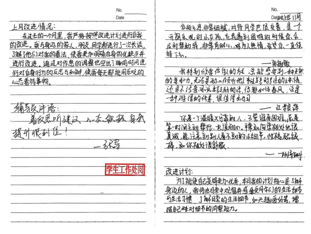 成才笔记是我校建校以来师生共同建设、维护的一项特色校园文化,具有“兼听则明”、“他山之石可以攻玉”和“三省吾身”的哲学寓意,通过每月目标及具体的实践路径措施,增强目标规划意识,有利于自我追求不断进步,积极改进不足,成为有理想、有担当的新时代接班人。