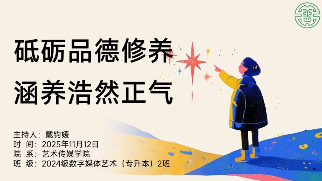 品德是立身之本,正气是行事之基。砥砺品德修养,涵养浩然正气,不仅能引导同学们明辨是非,坚守原则,更能塑造健全人格,筑牢担当民族复兴大任的思想根基。为进一步强化同学们的道德意识,一善书院全体同学于2025年11月16日开展“砥砺品德修养,涵养浩然正气”主题班会。