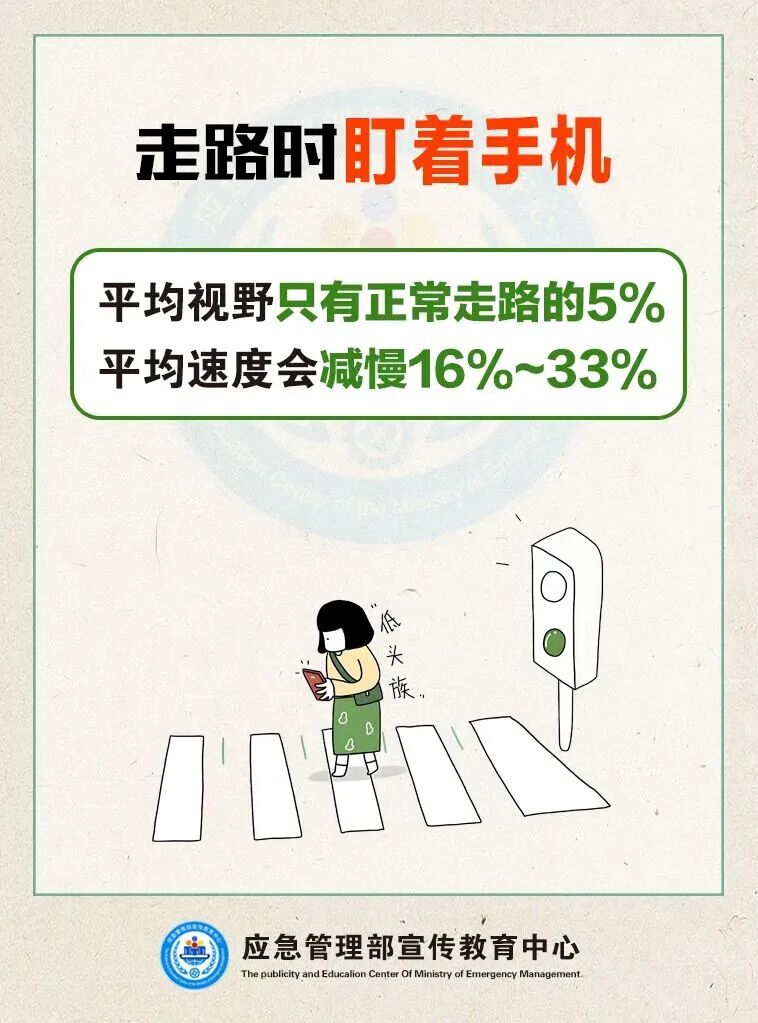 有关数据显示,三成以上的致命校园交通事故是由于行人注意力不集中造成的,低头看手机不看路,极大增加了危险系数。