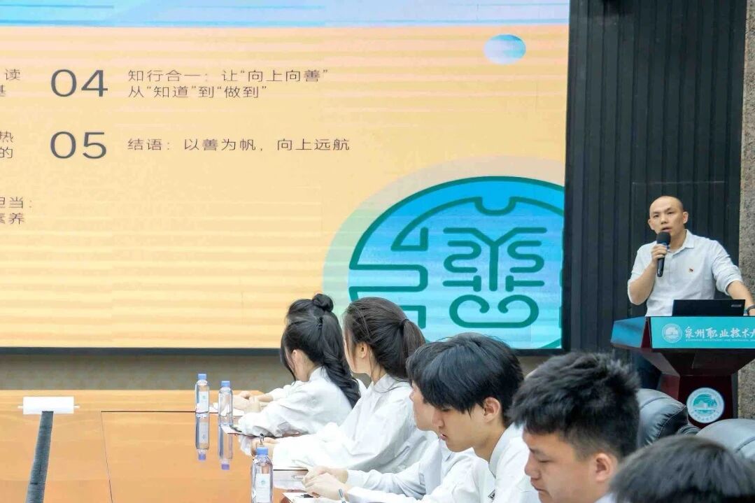 为深化学生骨干对“善”文化的理解与传播,有效提升书院学生组织工作的内涵与温度,一善书院党总支书记黄胤聪老师以“上善若水”的传统文化智慧为引,从安平桥的历史底蕴延展至闽南慈善热土的当代实践,系统梳理了闽南大地善文化的历史脉络与现代价值。他强调,“向善是底色”,鼓励青年骨干成为有温度的贴心人、有智慧的平衡者。学员们纷纷表示,通过本课不仅深化了对“善”文化的认识,也更明确了作为学生干部在传播善行、弘扬正气方面的责任,今后将不断夯实自身修养、注重行为实践,为书院文化建设注入更多温暖与力量。