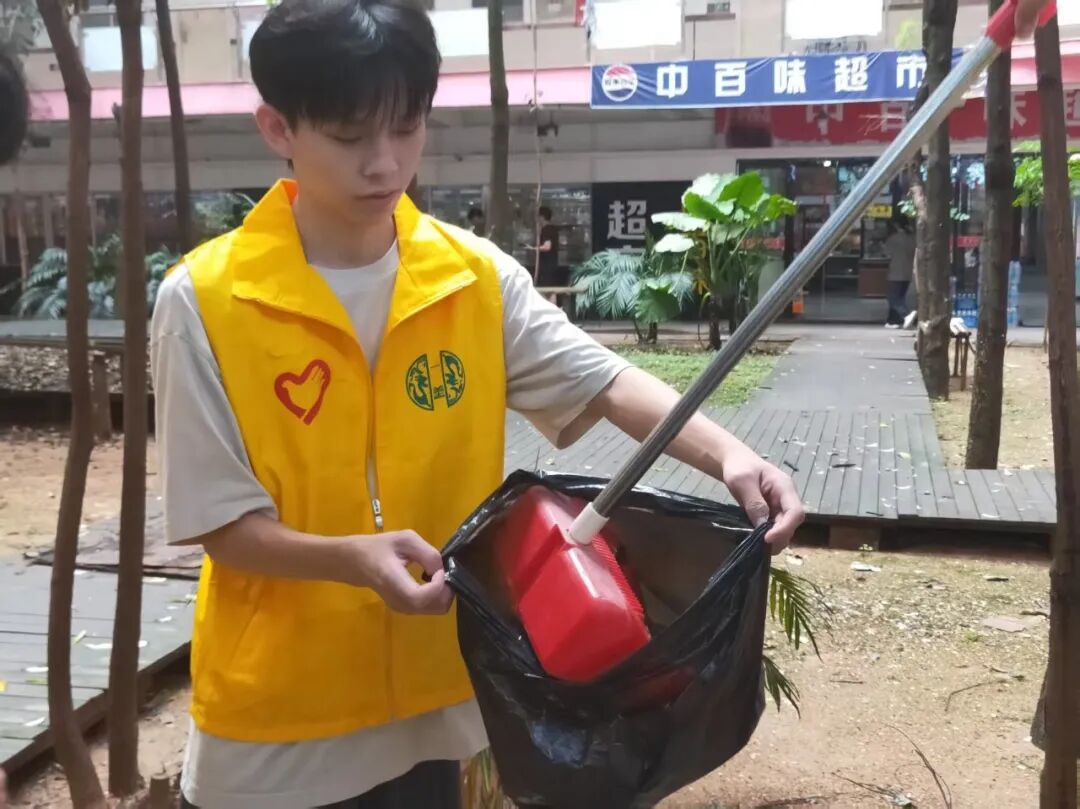 为维护校园环境整洁,确保垃圾容器的正常使用,24服设1班在“主人周”期间设立了垃圾规范投放引导岗。值守同学坚守在小垃圾桶旁,主动观察、及时上前,通过温馨的提示与指引,协助同学们将大件垃圾投放到指定的集中收集点,以细致的服务共同守护着校园的洁净与有序。