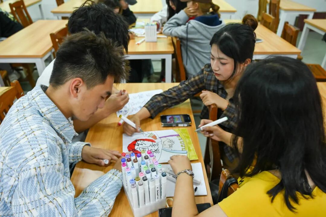 活动氛围在此环节推向高潮。同学们发挥创意与协作力,以画笔和色彩将“善念”“团结”的抽象理念转化为生动视觉作品,刻画民族携手、文化传承等场景。该环节为大家提供了多元表达平台,进一步夯实思想共识,展现了丰富的创造力与强烈的集体荣誉感。