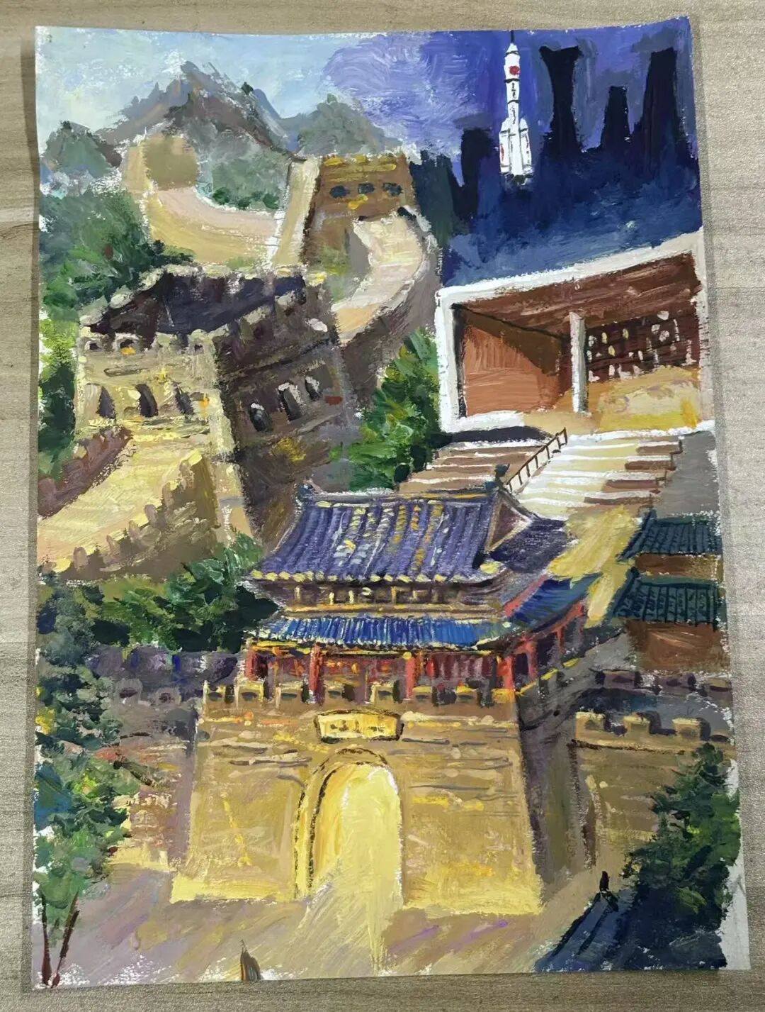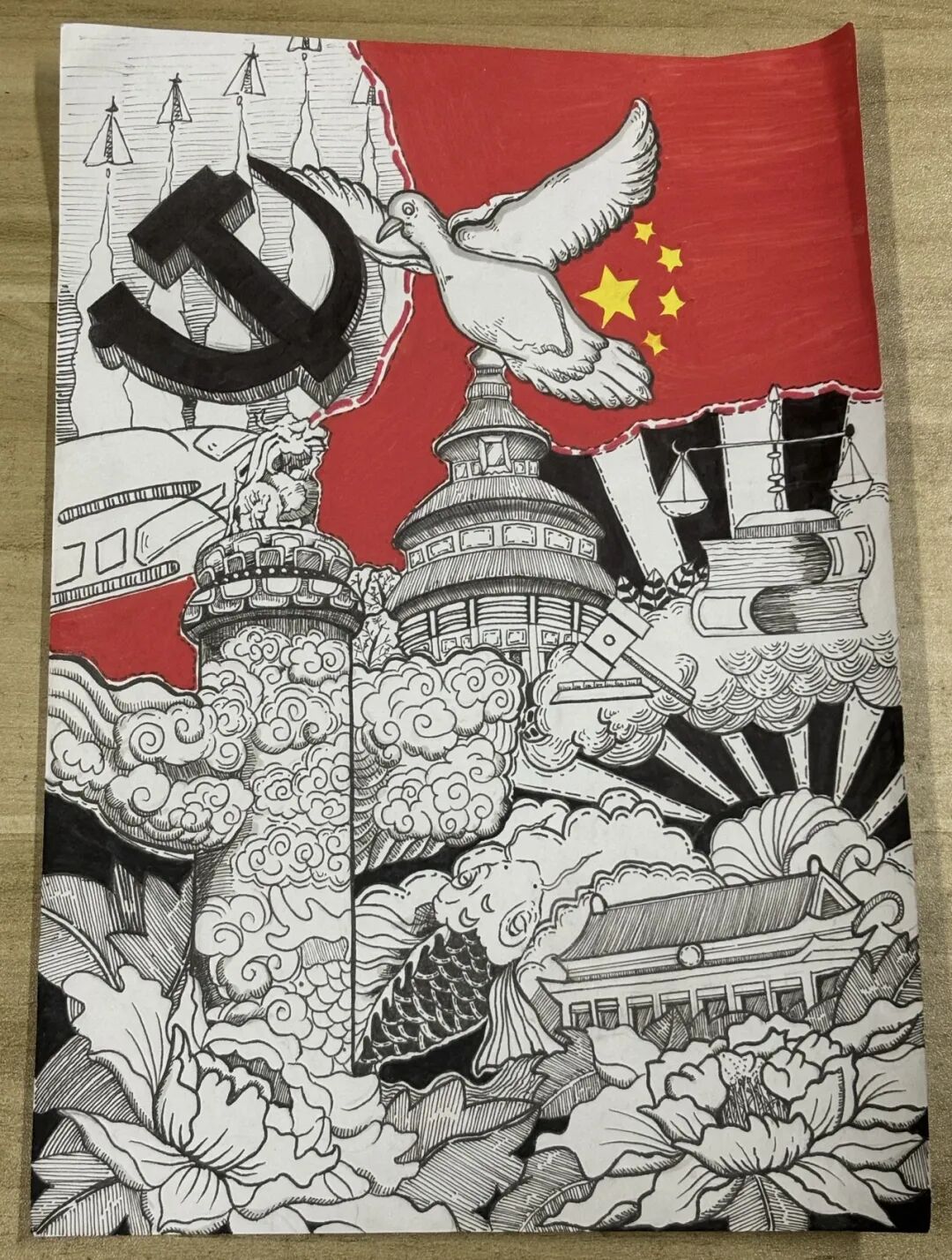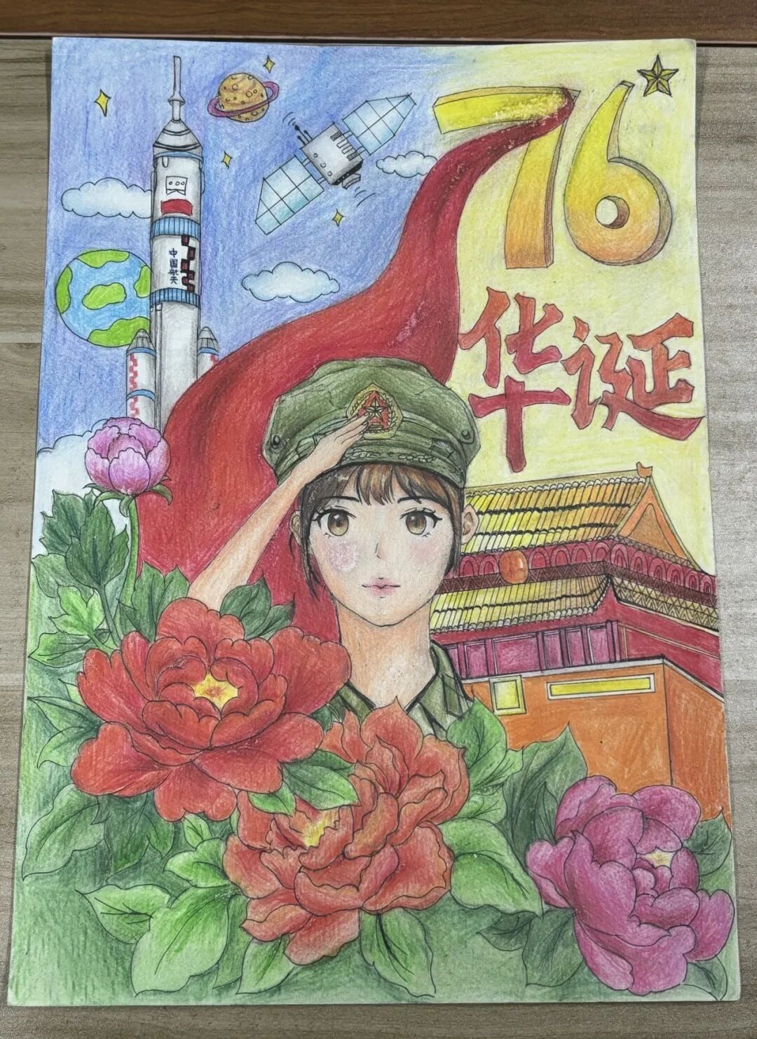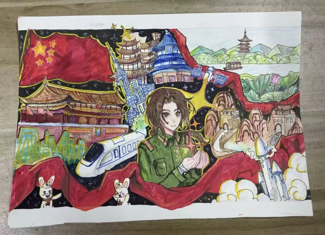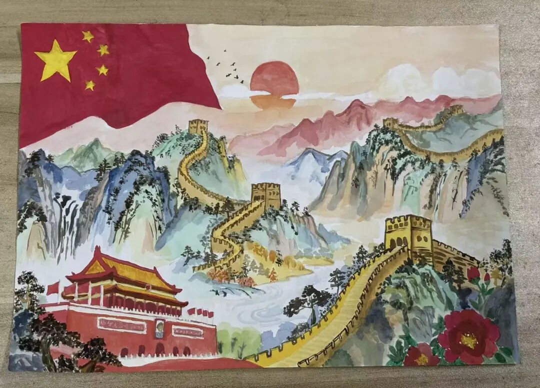 一善书院学子们化身爱国情怀的践行者与艺术创意的表达者,同学们潜心构思、精心创作,用手中的画笔与多样的色彩,将祖国的壮丽山河、城市的蓬勃风貌与国庆的浓厚氛围定格在一张张精美的画作之中,每一笔都饱含着对祖国的热爱与对时代发展的深切感悟。