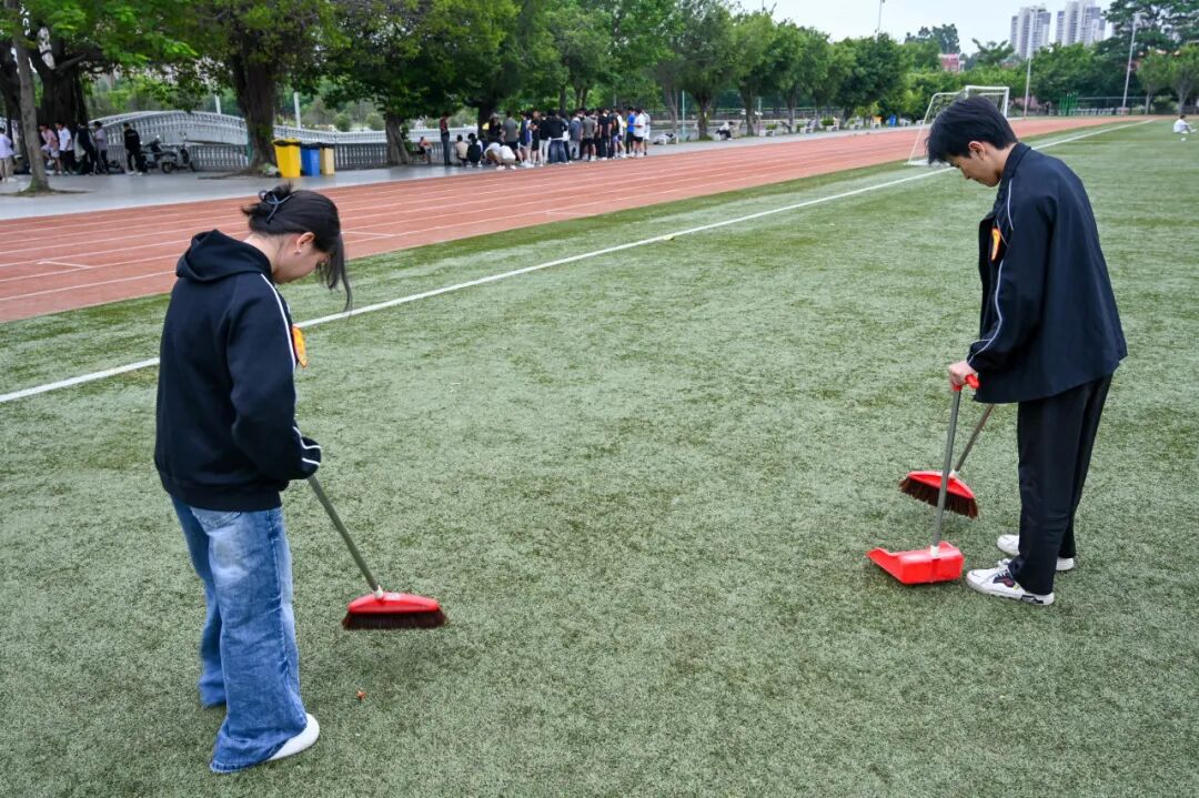 为配合迎新晚会开展工作,展现我校良好校园风貌,24服设2班于10月22日下午协助后勤保卫处开展公共区域清洁活动。同学们手持扫帚、垃圾夹等工具,分组对操场区域进行“深度清洁”:从跑道缝隙的碎屑,到看台角落的积尘,再到草坪边缘的杂物,都被逐一清理。劳动中,大家劲往一处使,脏累皆不惧,以汗水让操场恢复洁净活力,用实际行动践行“校园整洁,我有责任”的主人翁承诺。