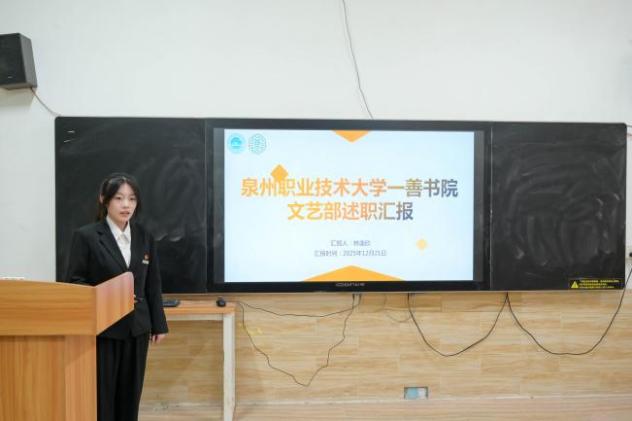 时光荏苒,步履铿锵;回望耕耘,笃行不怠。为全面总结学期团学工作成效,明晰后续发展方向,凝聚青春奋进力量,12月21日下午13:00,一善书院于B118教室召开2025-2026学年第一学期团学组织述职大会。书院院务副主任刘俊辉、团委书记阮吉圣,自律会与物业小管家指导老师林龙杰、心理辅导站指导老师张紫怡莅临指导,各团学部门负责人齐聚一堂,同台述职亮绩,共绘发展蓝图。
