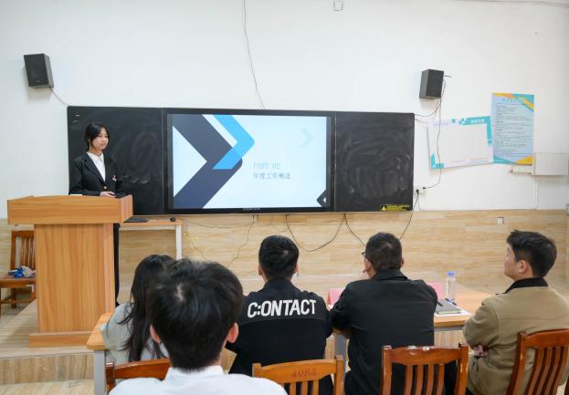 各团学部门负责人也依次登台,立足职能岗位交出详实答卷。团委各部门分别围绕组织建设、实践服务、志愿引领、宣传赋能等核心职责,系统梳理工作推进情况与成效;学生会及自律会各部门则聚焦学风培育、心理关怀、文体活动、纪律监督等重点领域,以扎实的数据和鲜活的案例,诠释了一学期以来的辛勤付出与责任担当。