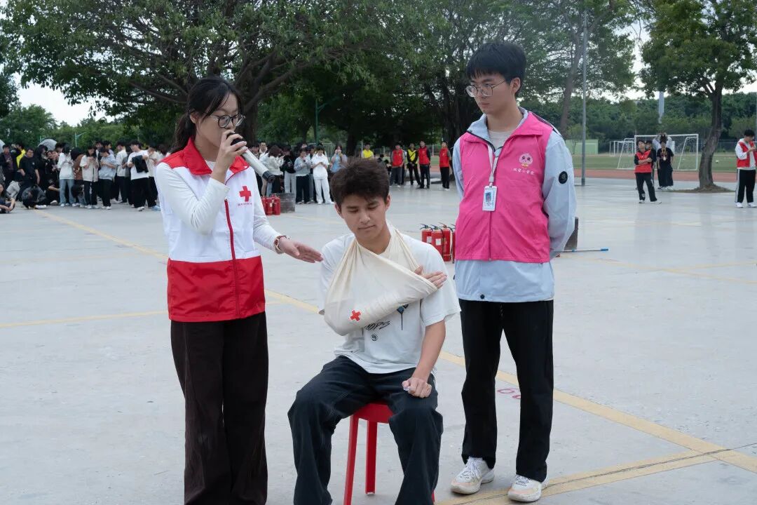 演练间隙,一善书院与双馨书院的辅导员们还带来了实用急救技能培训。针对火灾等突发事件中可能出现的受伤情况,辅导员们围绕心肺复苏(CPR)、创伤止血、伤口包扎等核心急救技能展开细致讲解,不仅拆解了操作流程中的关键要点,还进行了全程实操演示,手把手指导师生规范操作,帮助大家切实掌握自救互救的关键能力。
