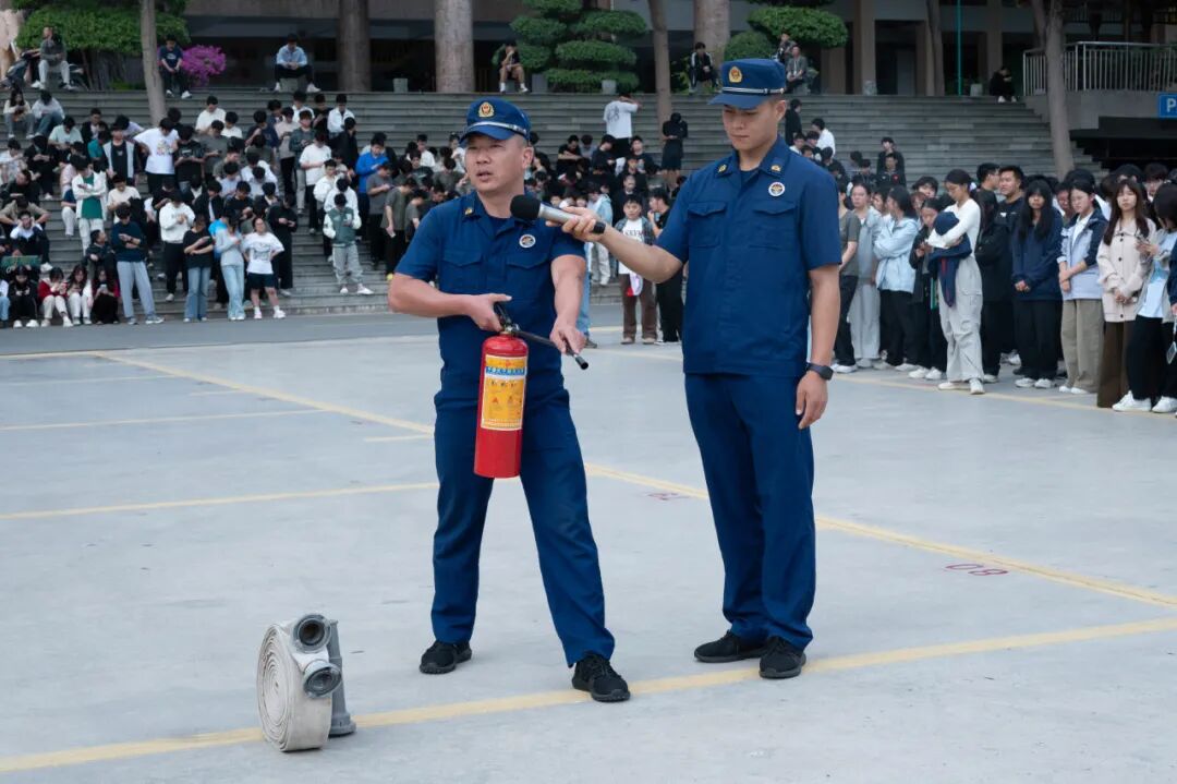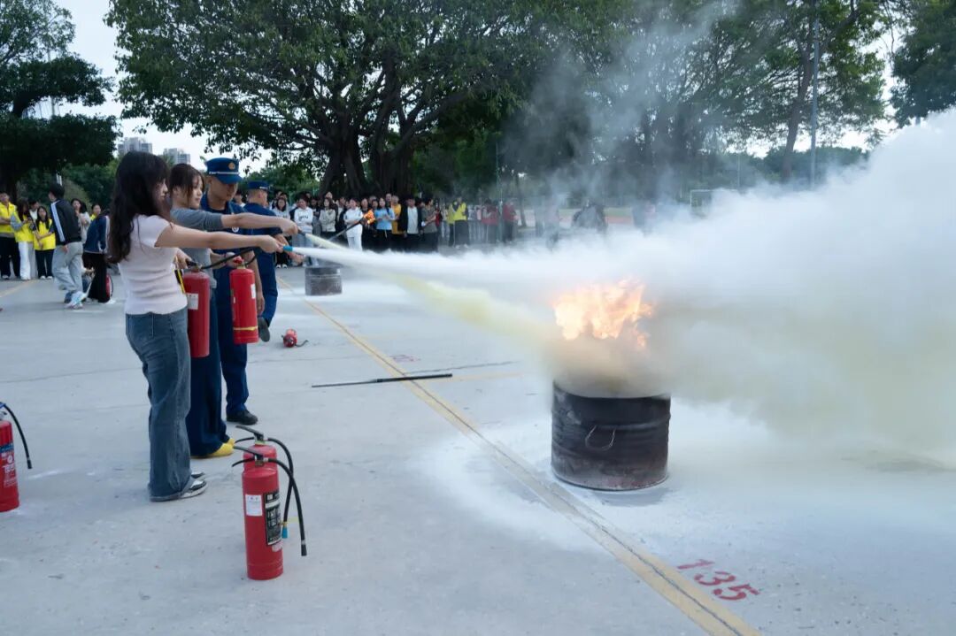 活动特邀内坑镇消防官兵进校指导,讲师结合校园火灾典型案例,讲解宿舍违规用电等常见隐患危害,还现场演示灭火器“提、拔、握、压”操作要领与浓烟逃生技巧,针对同学疑问逐一解答。在专业人员指导下,同学们分组进行灭火器实操演练,切实掌握器材规范使用方法。