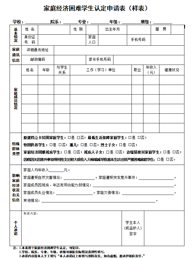 【附件】1、 家庭经济困难学生认定申请表(样表).docx