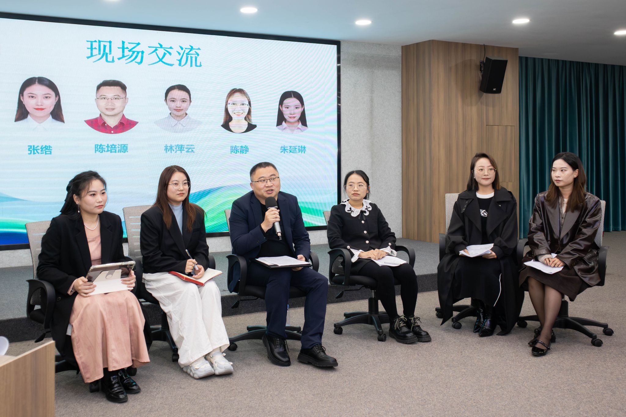 现场交流中,陈培源副教授不仅解答现场老师们的提问,还特别强调教学项目应源自企业真实需求,通过科学拆解与课程内容有机衔接。团队成员林萍云、林嘉颖、张绺、朱延琳、陈静分别分享了深入研讨学习“3C3S”教学法,理解其内涵并成功应用于各自课程教学,实现师生共成长的体会,强调项目任务驱动与团队协作对教学改革的关键作用。