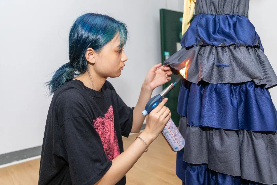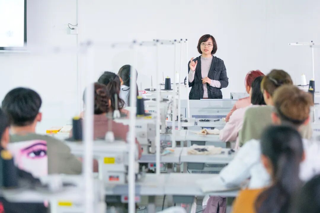 教学体系以市场需求为导向、以学生就业发展为中心,在时尚设计、数字展示、工艺技术、营销管理等四大课程模块基础上,紧跟人工智能趋势,开设“艺术+科技”的数字化特色教学课程。教学上,打造对接岗位的“工作室一体化”教学模式,学生从设计、制版到成品制作全程参与,通过模拟实际工作环境,更好地为职业发展做准备。