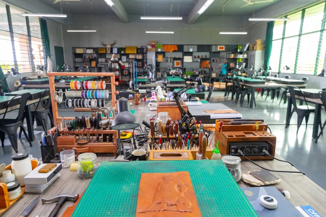 实训条件:建有3D打印工坊、染色实训室、皮雕实训室、雕塑实训室、陶瓷实训室等场所构成的大型艺术工坊。