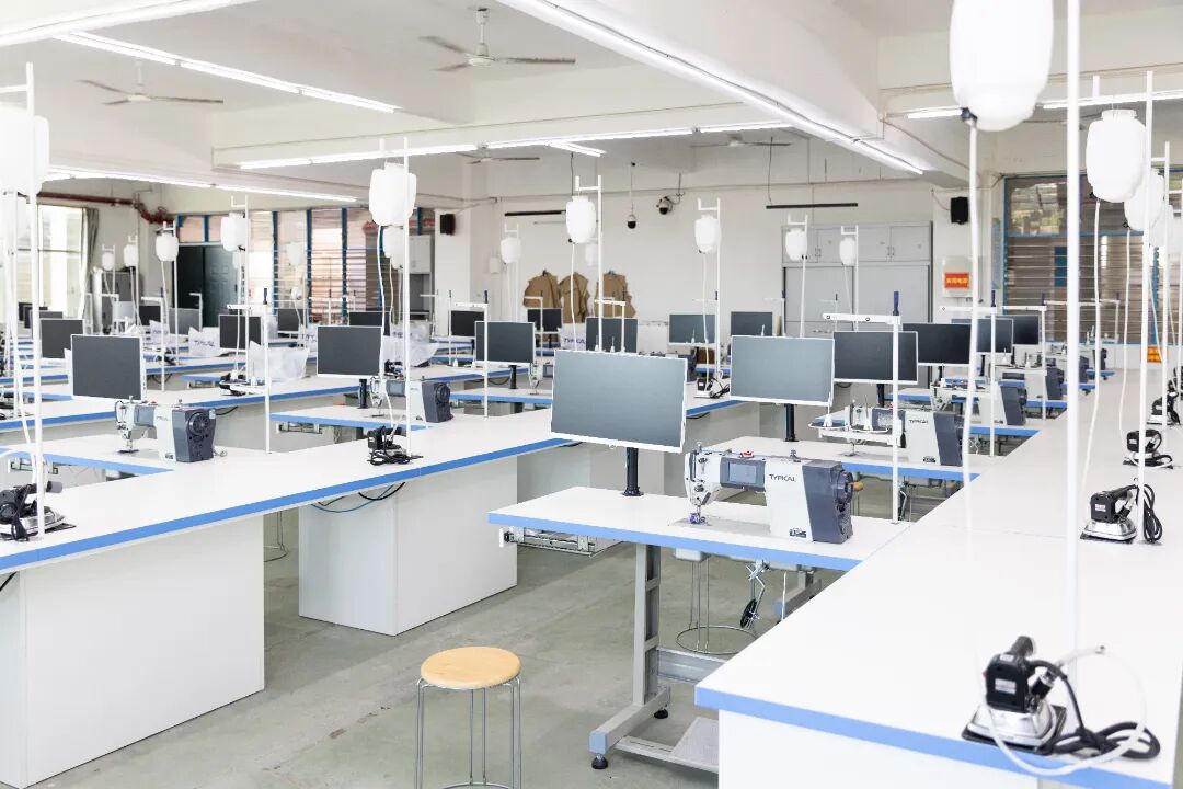 实训条件:设有传统织物染色实训室、服装面辅料实训室、服装设计实训室、服装制版实训室、服装3D数智化实训室、服装立裁实训室、服装工艺制作实训室等。